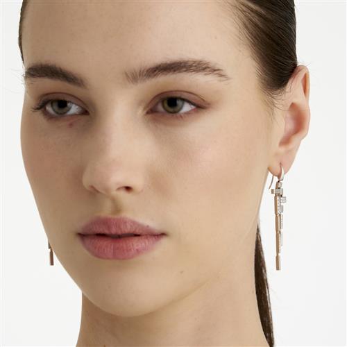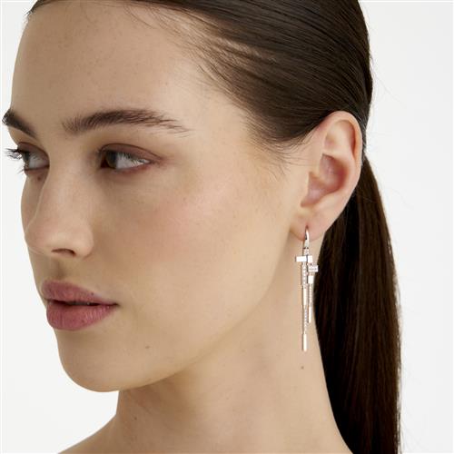 Each earring composed of a double drop of alternating polished white gold and pavé-set diamond panels, to shepherd hook fittings, signed Canturi, length 60mm, gross weight approximately 11.7 grams.