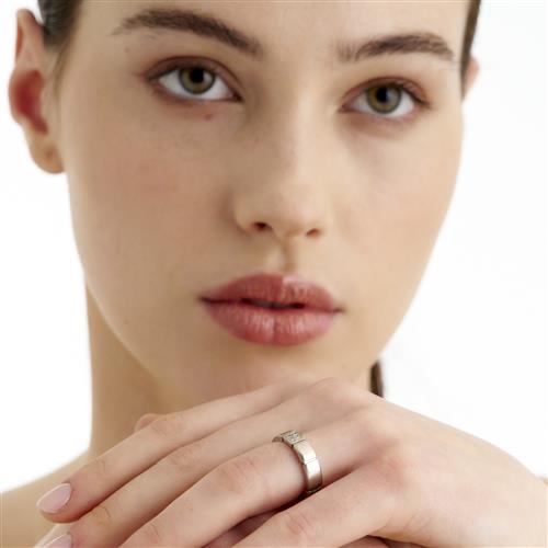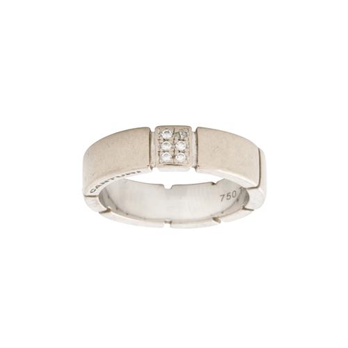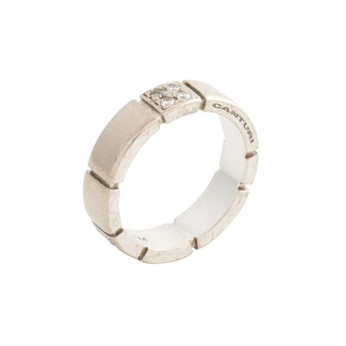 Modelled as a series of rectangular panels, set at intervals with square panels each detailed with four bead-set round brilliant-cut diamonds, the diamonds together weighing approximately 0.14 carats, size L 1/2, signed Canturi, gross weight approximately 8.0 grams.