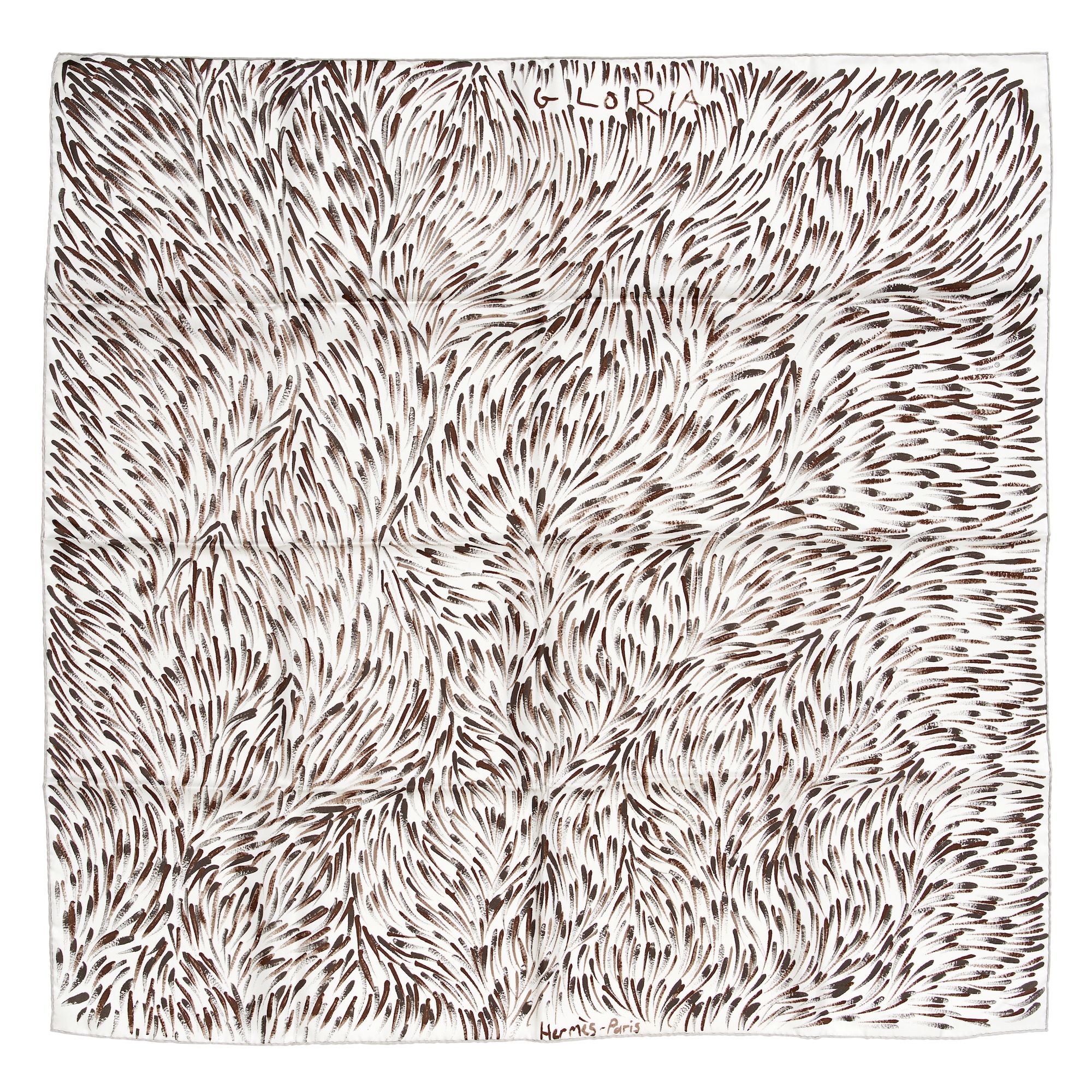 Design by Gloria Petyarre with an all-over abstract brushstroke print in tones of ivory, taupe and brown, measures 90 cm.