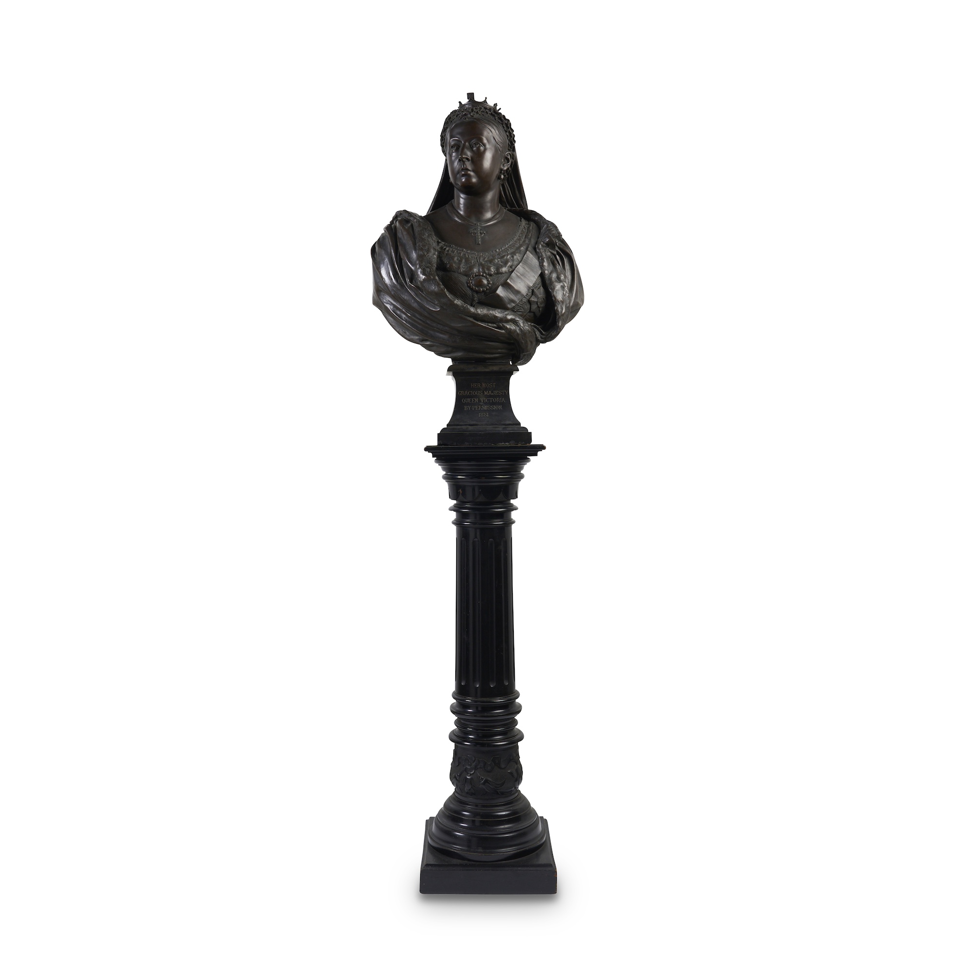 The socle incised to the front 'Her Most / Gracious Majesty / Queen Victoria. / By Permission. / 1881.