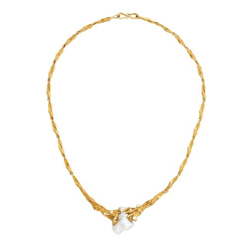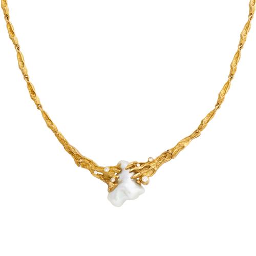 LINNEYS, 18CT GOLD, KESHI PEARL AND ARGYLE DIAMOND NECKLACE