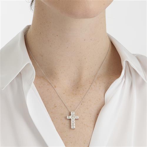 STYLISH DIAMOND CROSS PENDANT NECKLACE