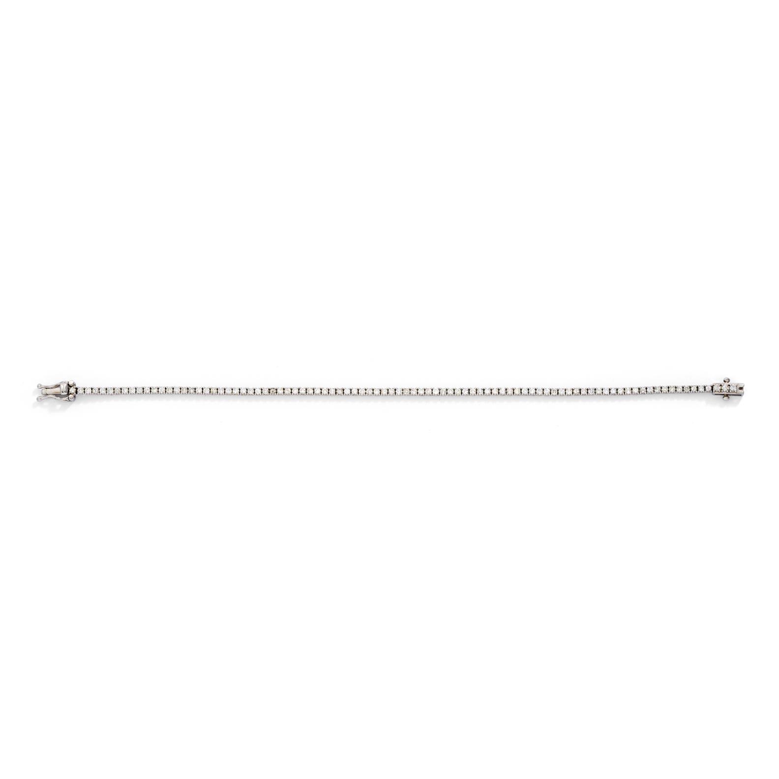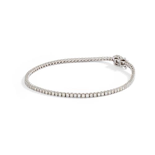 Composed of a uniform line of claw-set round brilliant-cut diamonds completed by a concealed box clasp, the diamonds together weighing approximately 2.00 carats, mounted in 14ct white gold, length 175mm.
