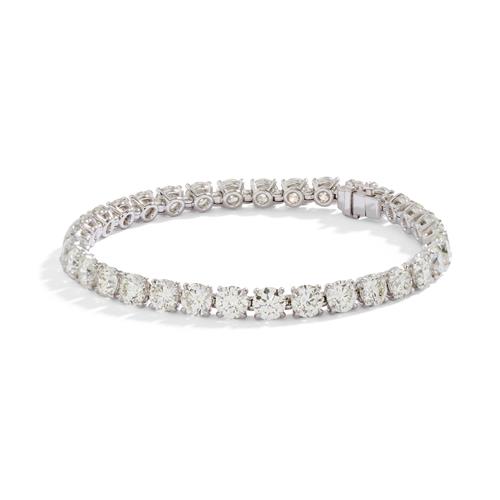 Composed of a line of 33 claw-set round brilliant-cut diamonds completed by a concealed box clasp, the diamonds together weighing 16.81 carats, mounted in 18ct white gold, length 175mm.