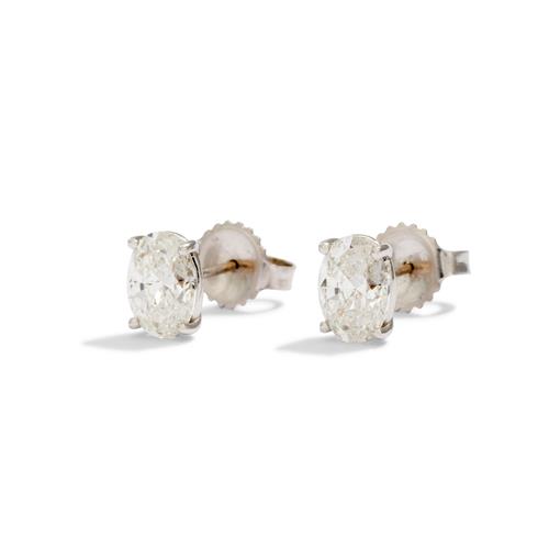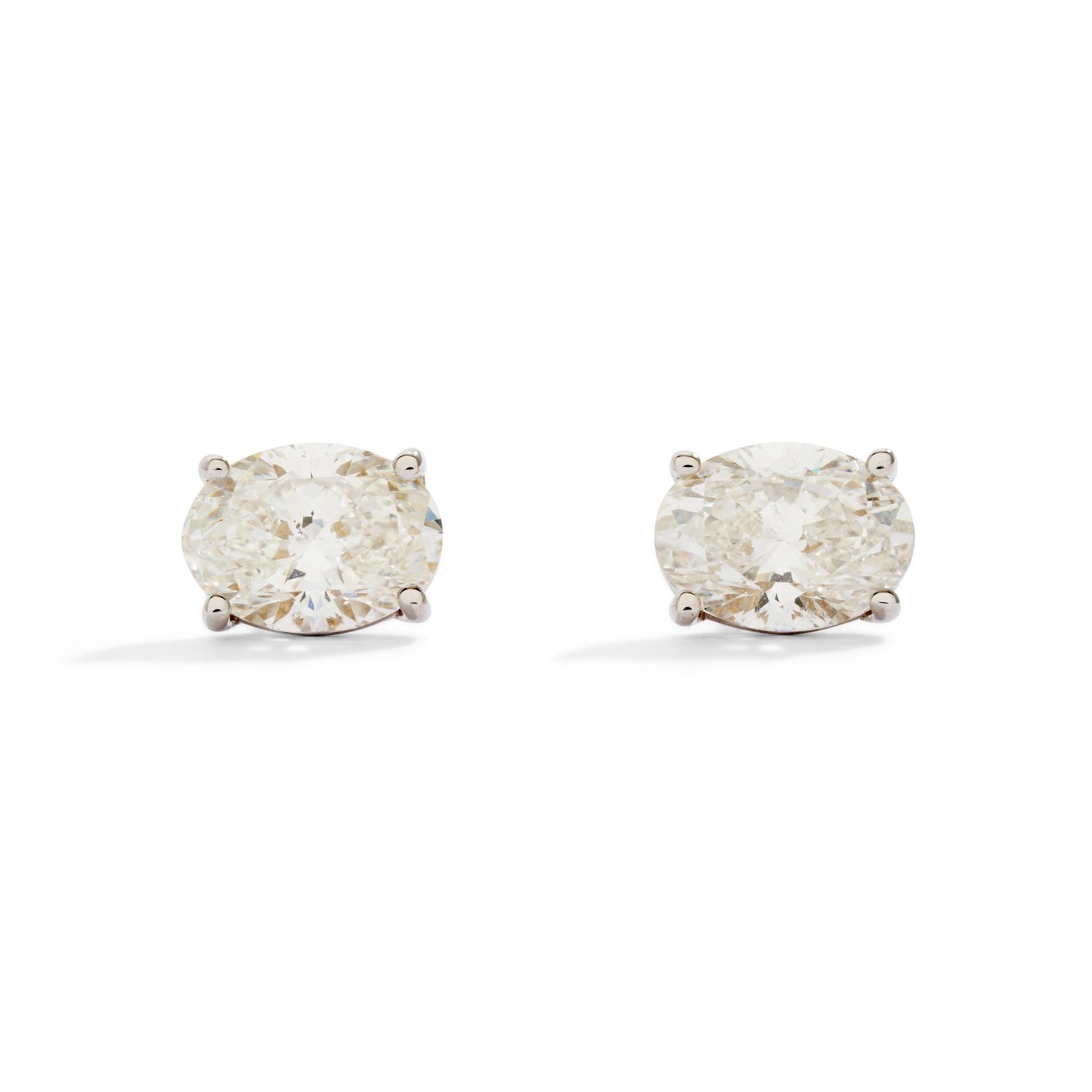 The oval brilliant-cut diamonds each weighing 1.00 carat, are claw-set, mounted in 18ct white gold, post and scroll fittings.