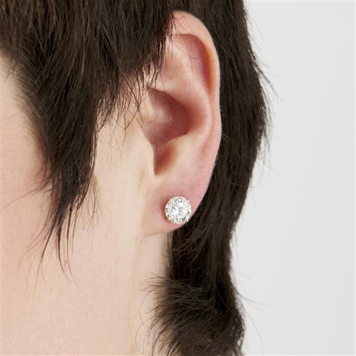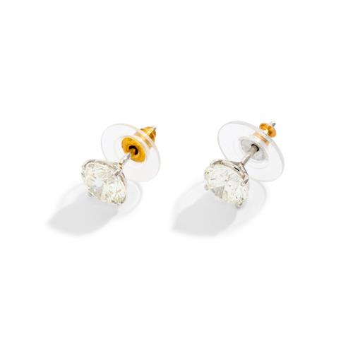 The round brilliant-cut diamonds each weighing 1.70 carats, are claw-set, mounted in 18ct white gold, post and scroll fittings.