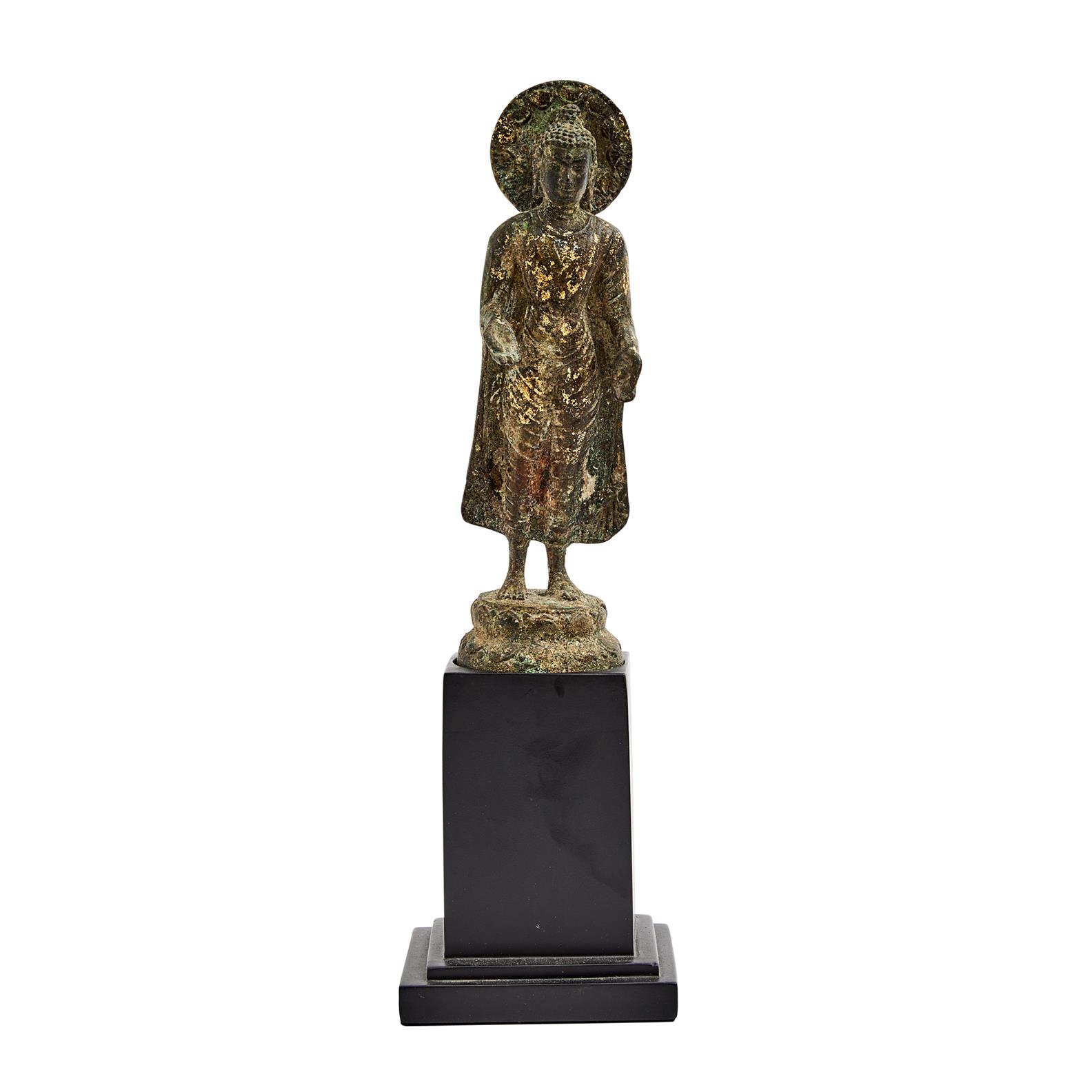 18th century, in the Mon Dvaravati style, with a halo and finely pleated robes and cape.