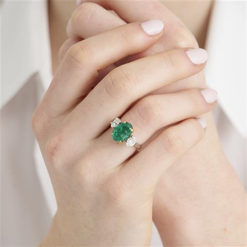 EMERALD AND DIAMOND THREE STONE RING