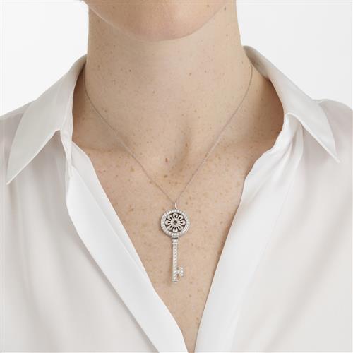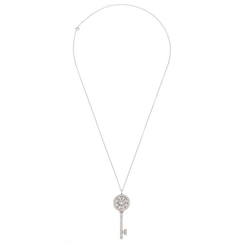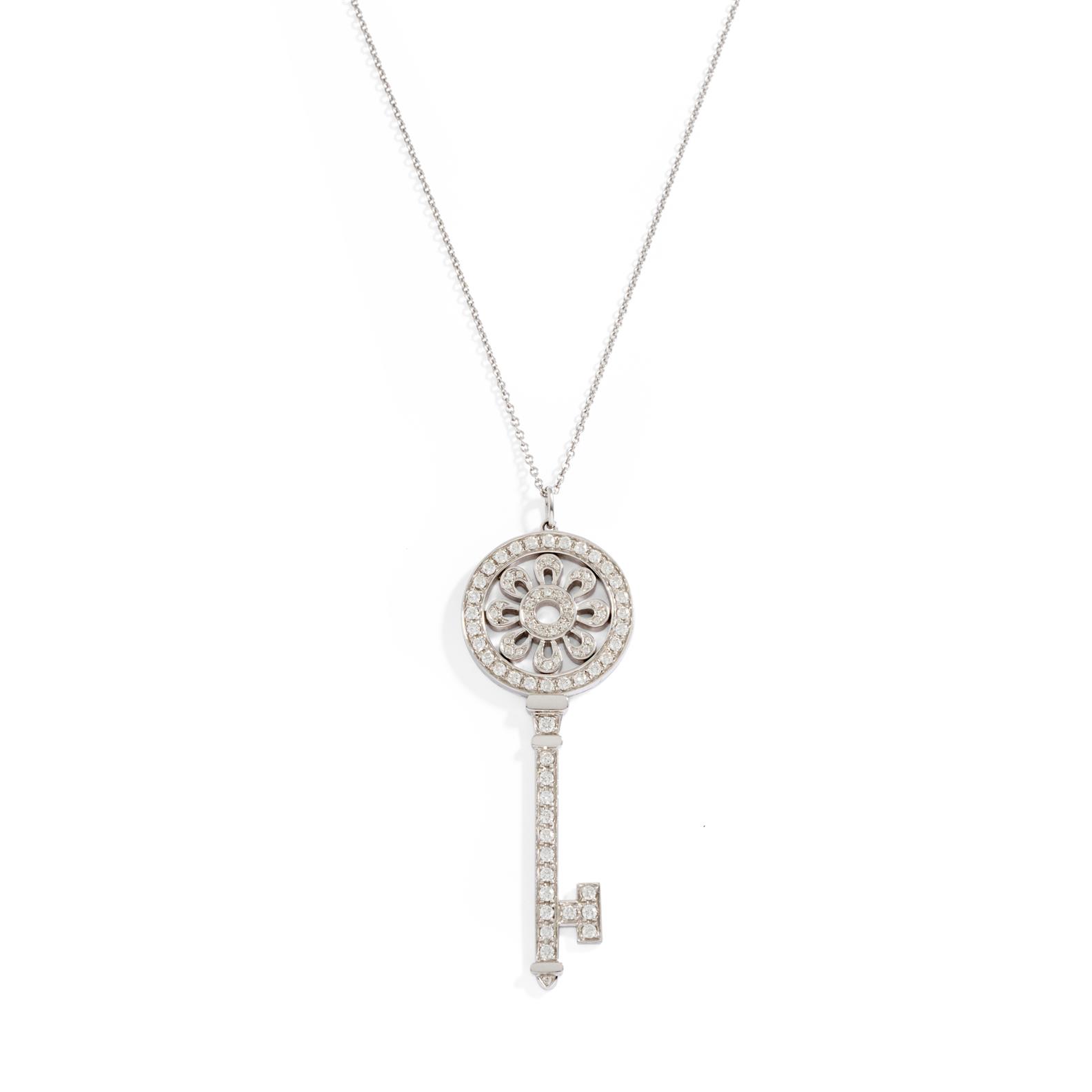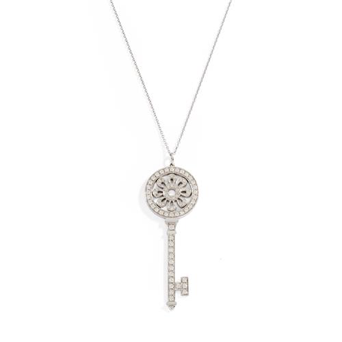 Modelled as an openwork key, decorated with brilliant-cut diamonds, the diamonds together weighing approximately 1.18 carats, mounted in 18ct white gold, length 53mm, signed T&Co. for Tiffany & Co.