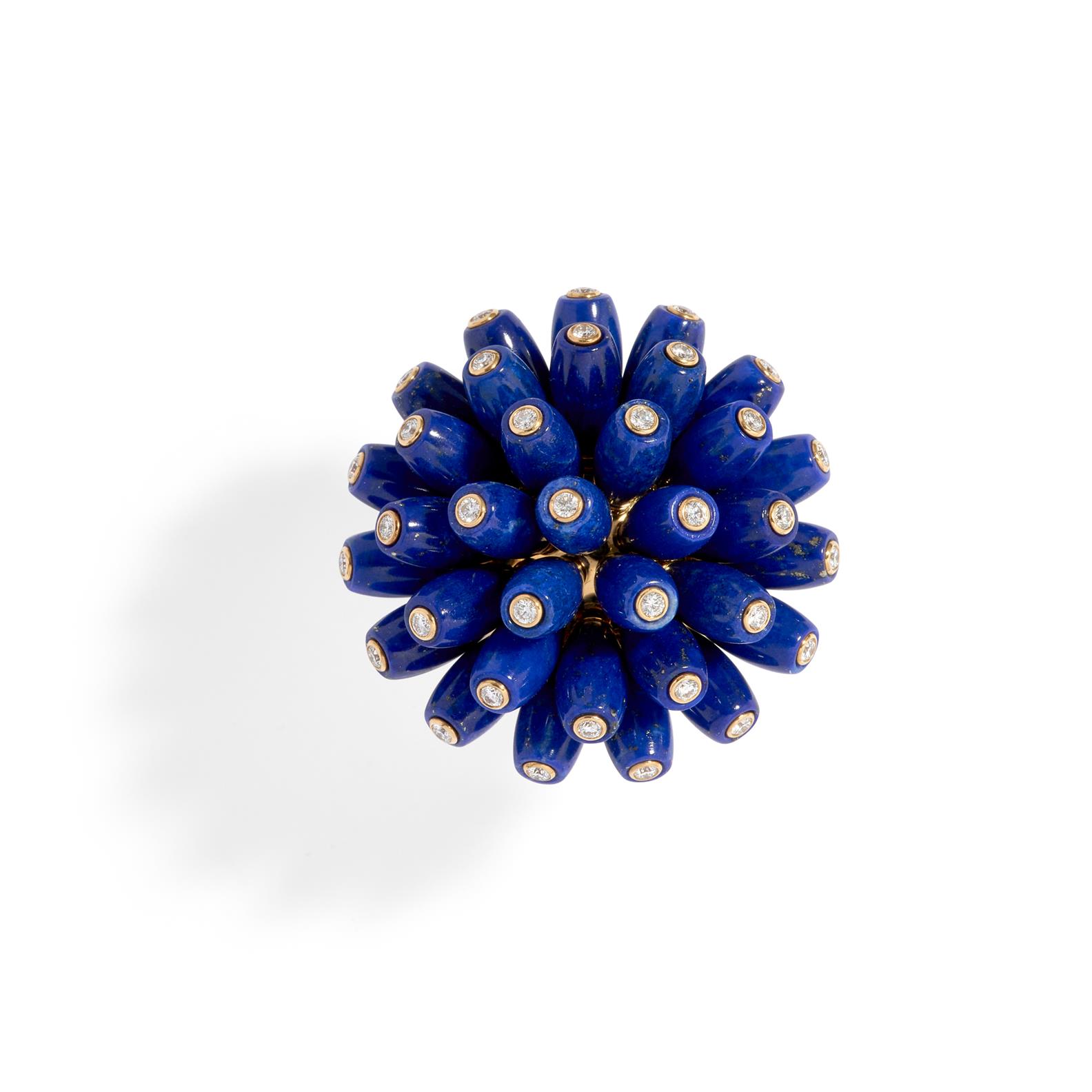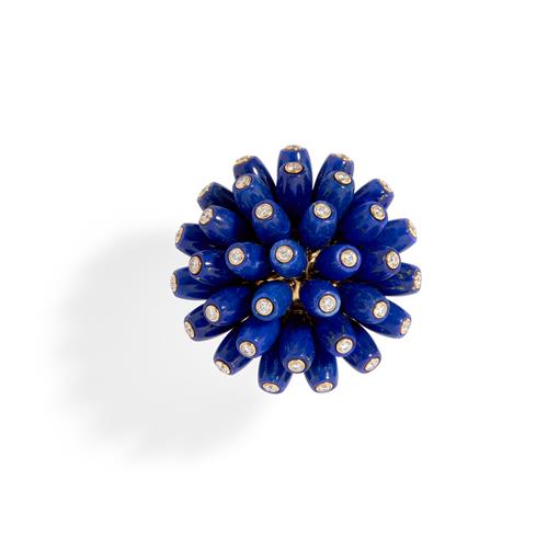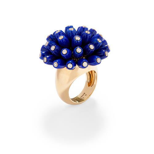 CARTIER SENSATIONAL LAPIS LAZULI AND DIAMOND 'PARIS NOUVELLE VAGUE' BOMBE RING : CIRCA 2010