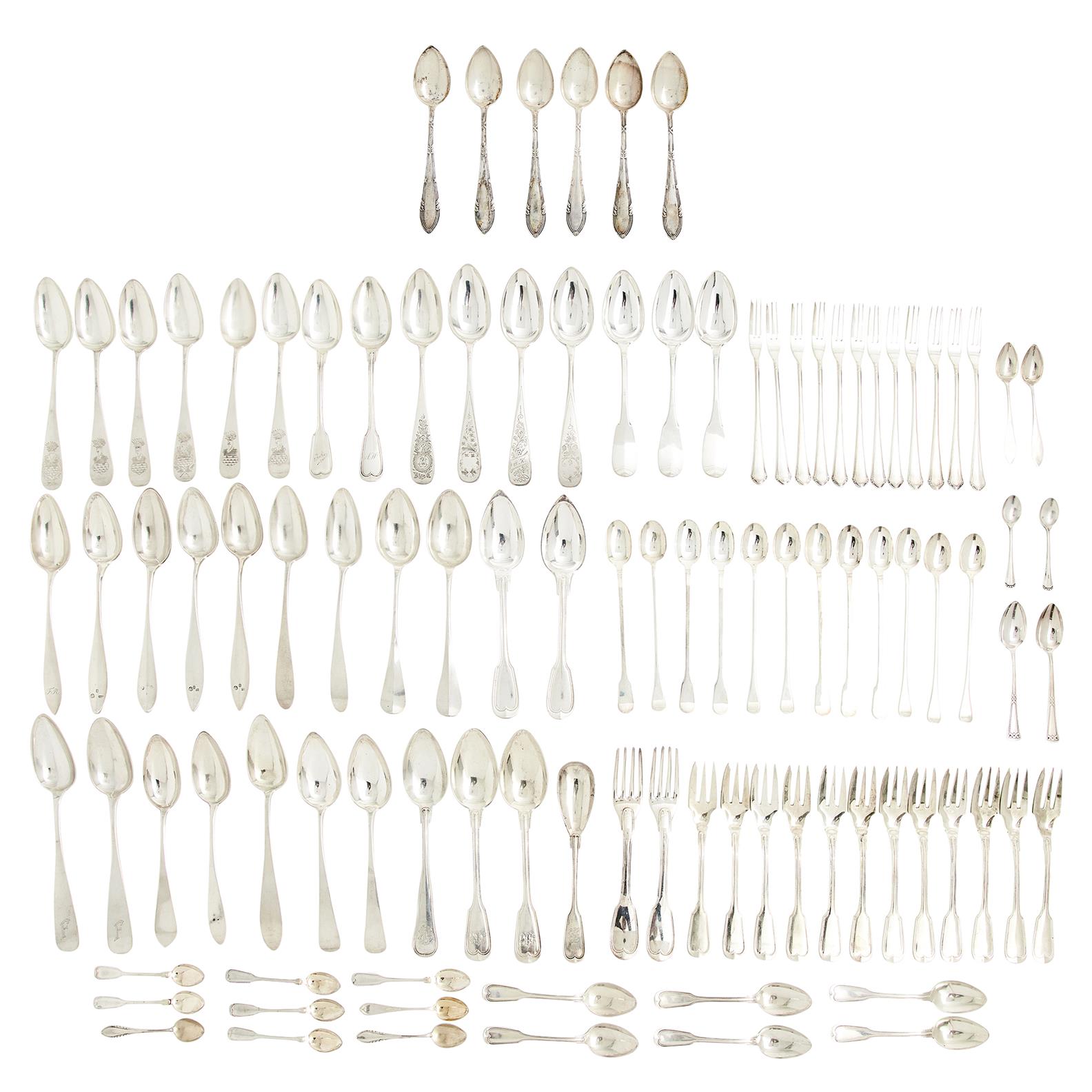 18th century and later, including tablespoons, forks, teaspoons, and parfait spoons.