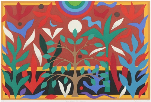 John Coburn, The Four Spiritual Seasons: Paradise Garden 1987, wool tapestry, 183 x 274cm, in the collection of the Art Gallery of New South Wales, Sydney