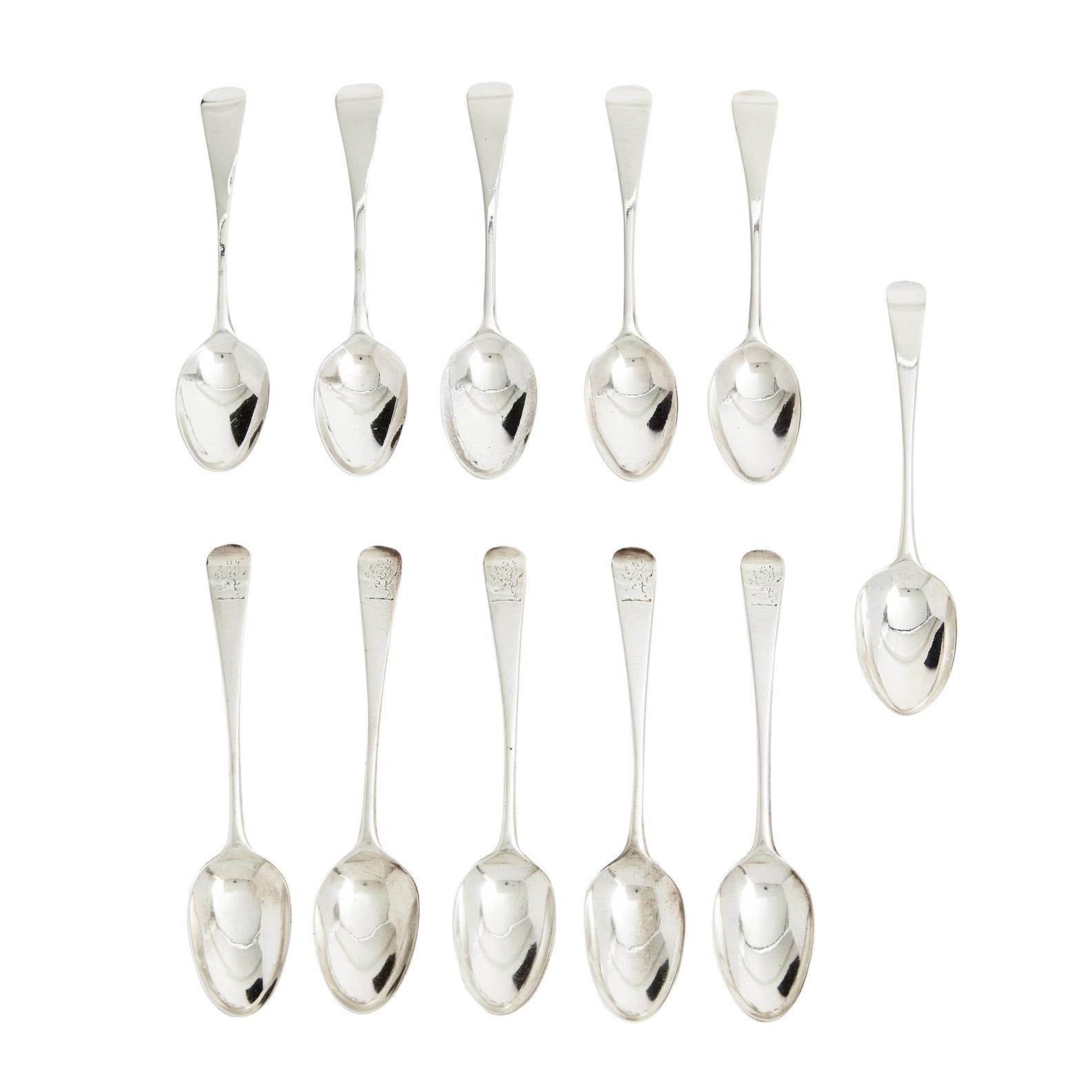 ELEVEN GEORGE III OLD ENGLISH PATTERN SILVER DESSERT SPOONS