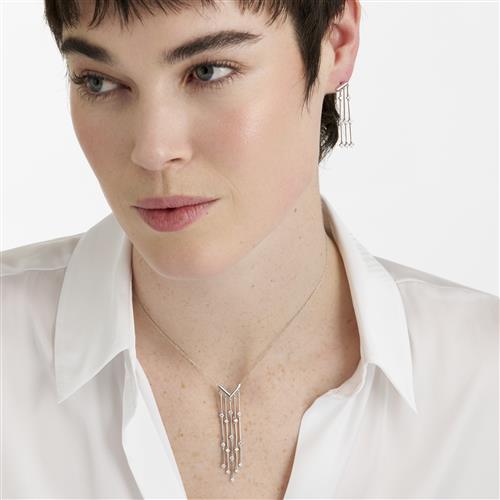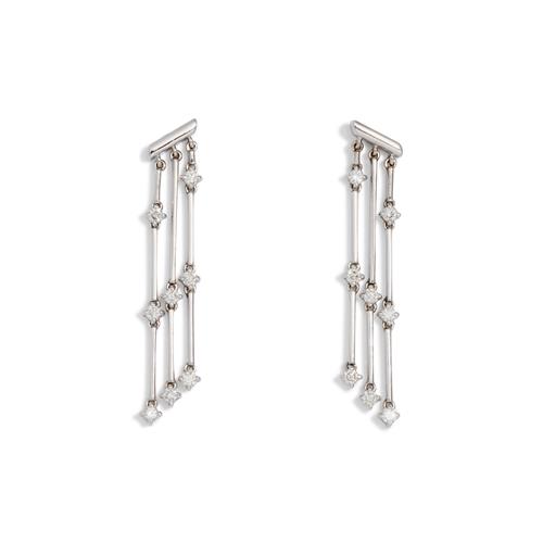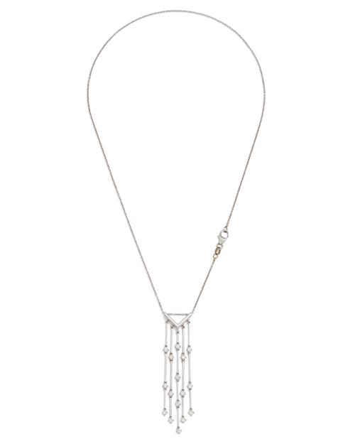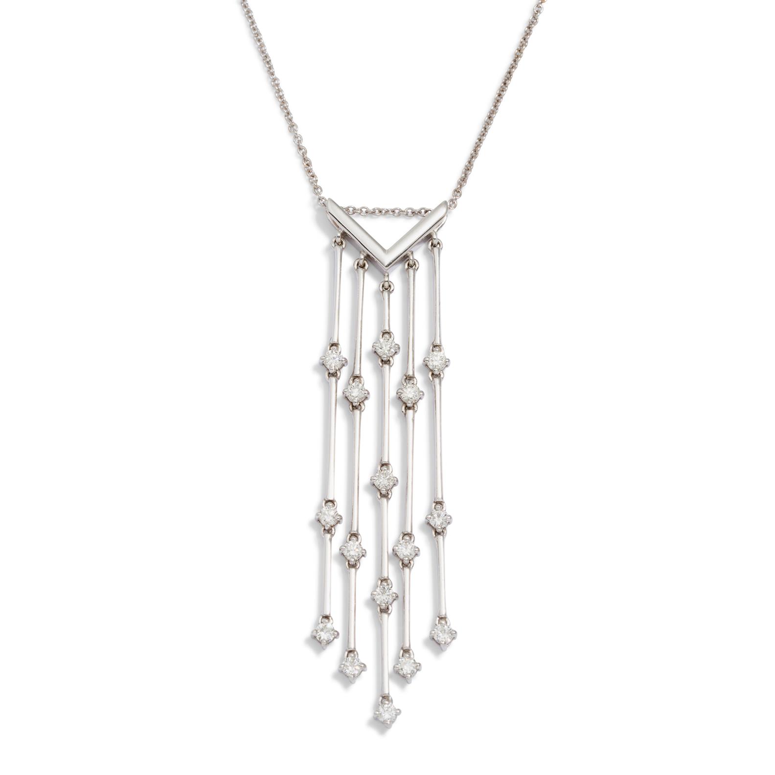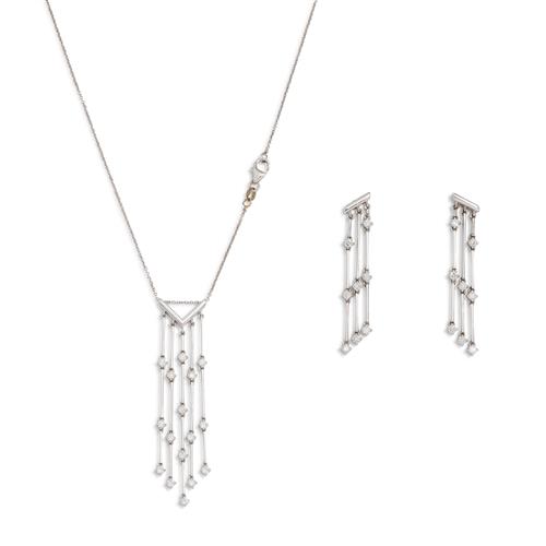 Comprising of: a pendant necklace designed as a five line tassel claw-set at intervals with brilliant-cut diamonds supported from a trace link chain, a pair of earrings en-suite, earrings length 40mm, necklace inner circumference 390mm, tassel 56mm.