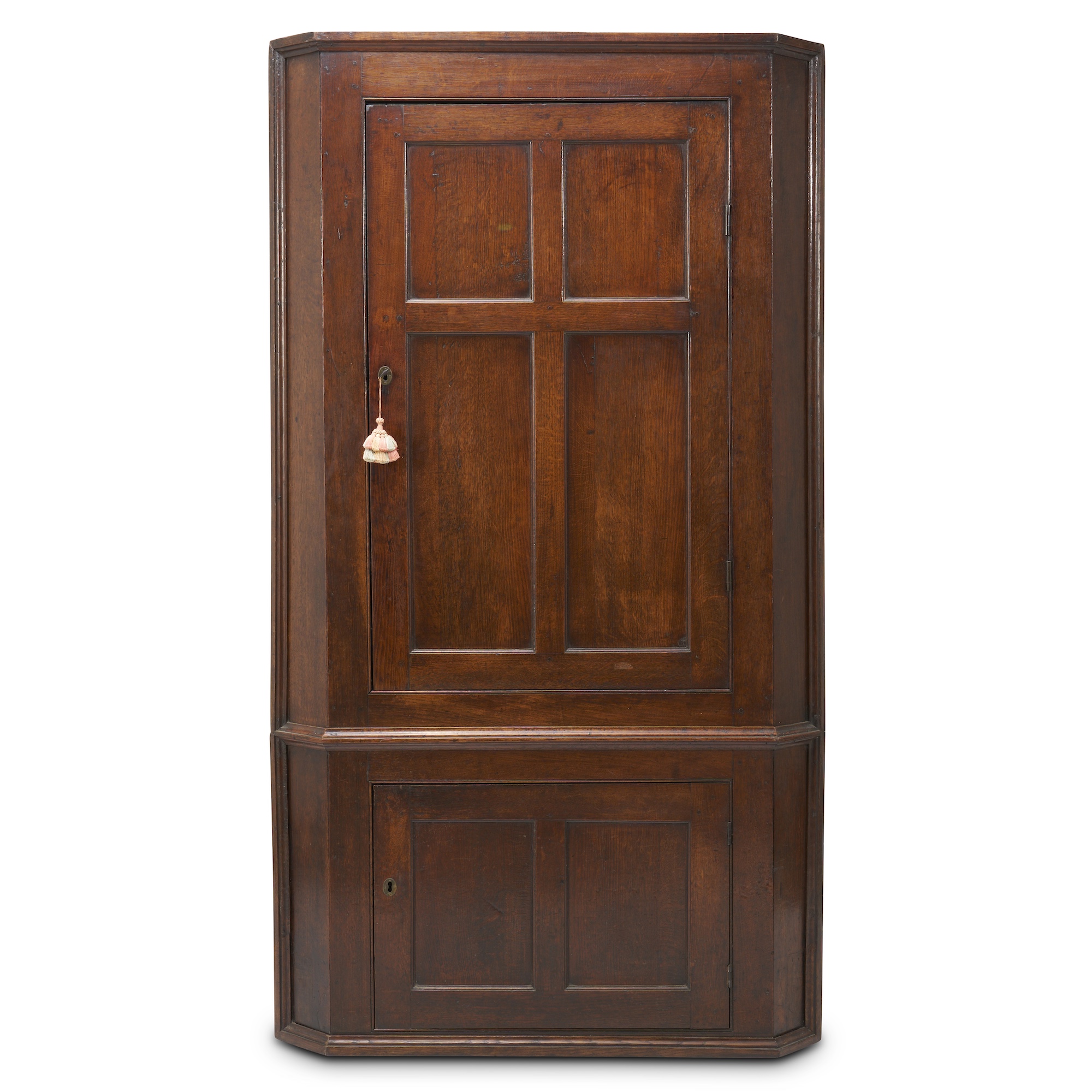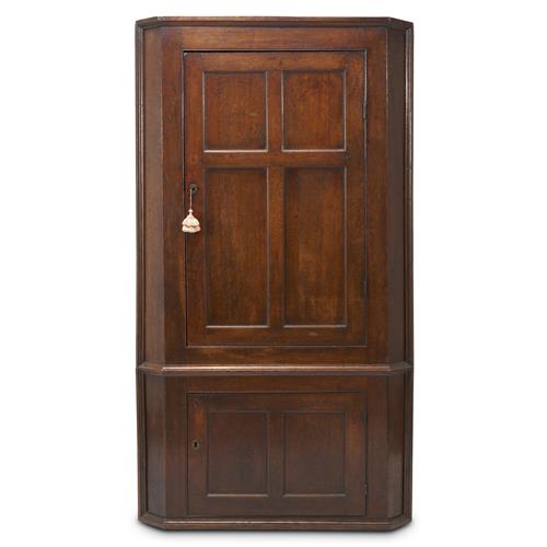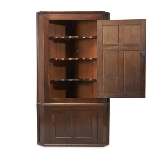A GEORGE III OAK STANDING CORNER CUPBOARD