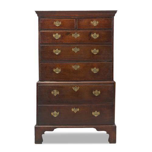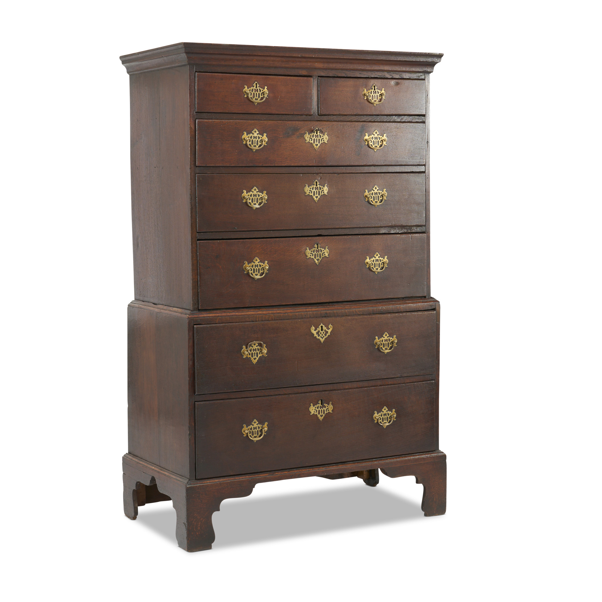 AN EARLY GEORGE III OAK CHEST-ON-CHEST