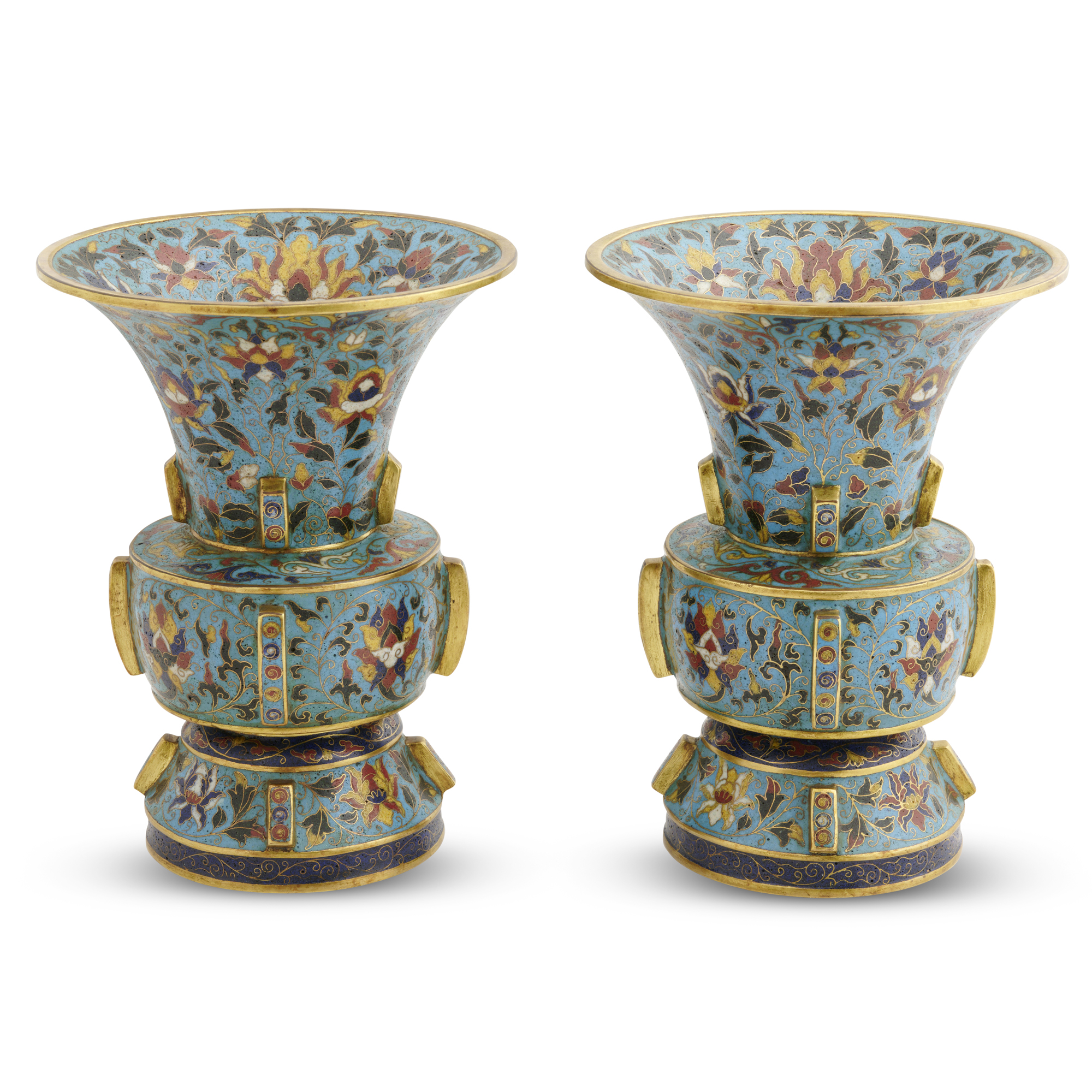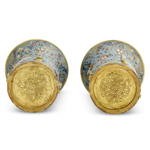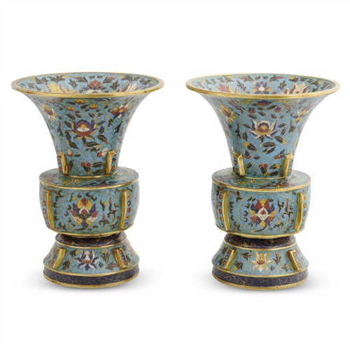 A PAIR OF CHINESE CLOISONNE GU SHAPED VASES, QING DYNASTY (1644 - 1911)