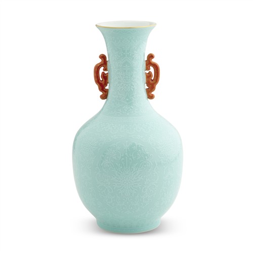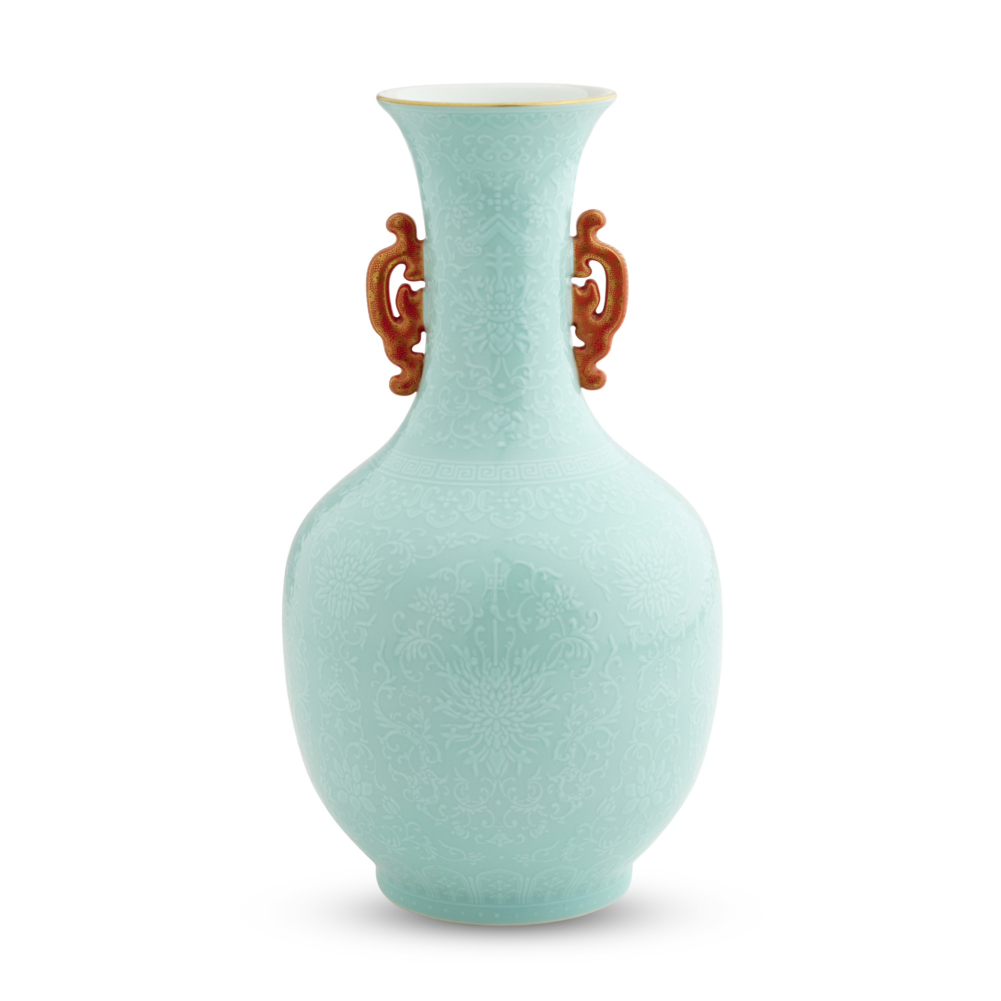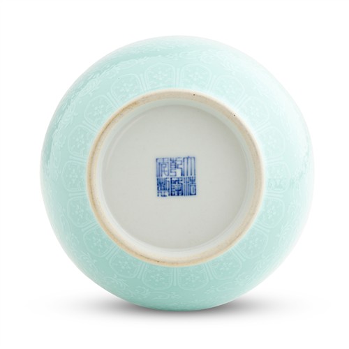 A FINE CHINESE SLIP-DECORATED TURQUOISE-GLAZED VASE, QIANLONG MARK, QING DYNASTY (1644 - 1911)