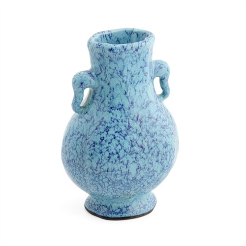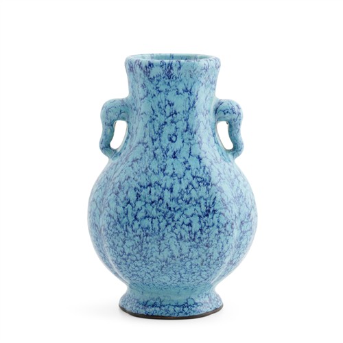 A CHINESE ROBIN'S EGG GLAZED ELEPHANT HANDLE VASE, QIANLONG MARK