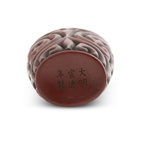 A CHINESE CINNABAR LACQUER TIXI DECORATED VASE, XUANDE MARK