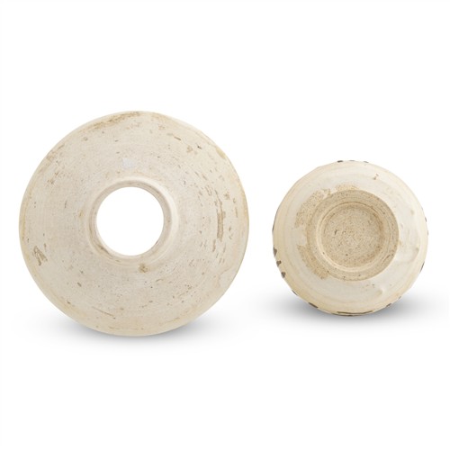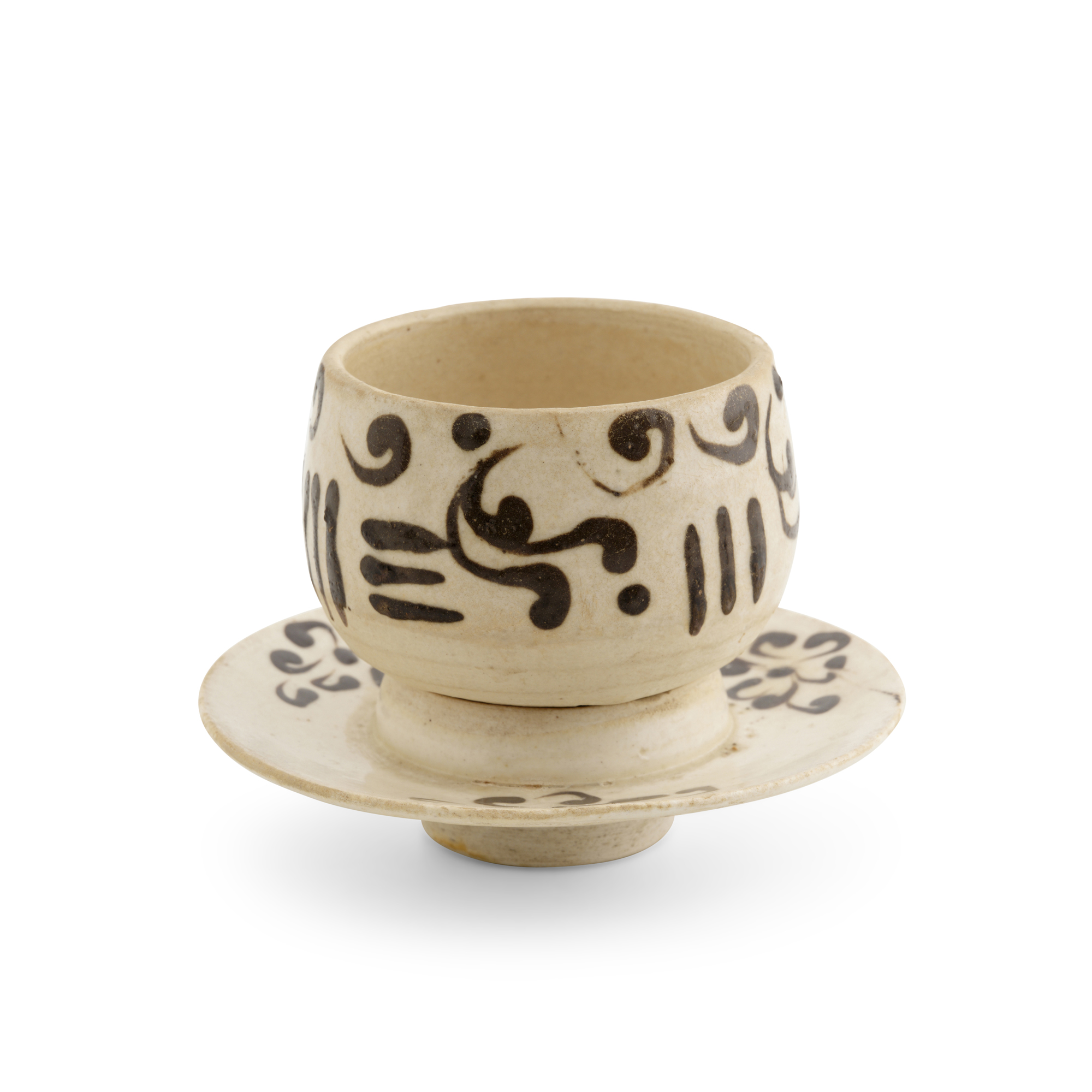 A CHINESE DANGYANGYU WARE WHITE GLAZE WITH DARK DECORATED CUP AND STAND, SONG DYNASTY (960 - 1279)