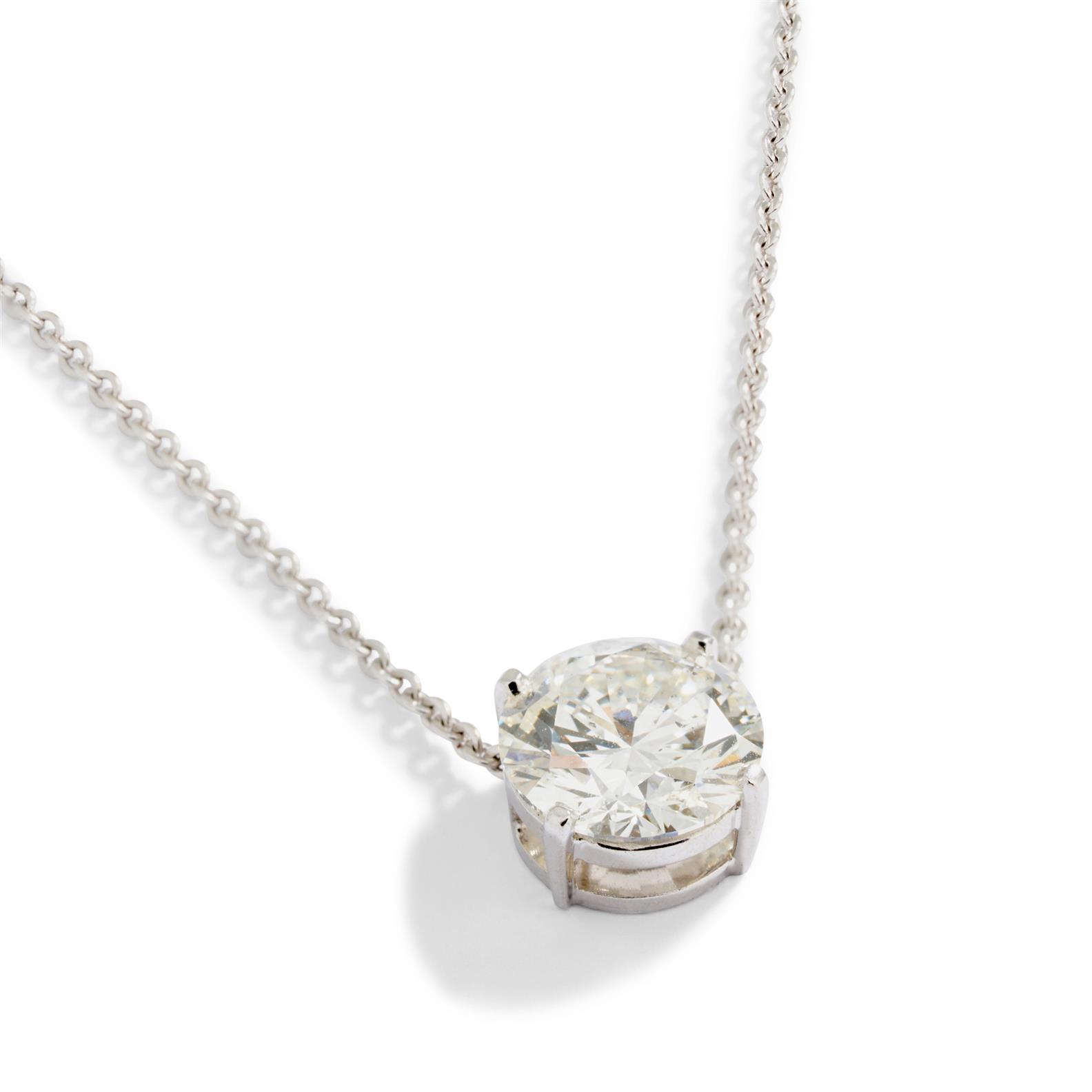 The brilliant-cut diamond weighing 4.04 carats, is claw-set, supported by a fine trace link chain, mounted in 18ct white gold, inner circumference 560mm (adjustable).