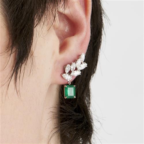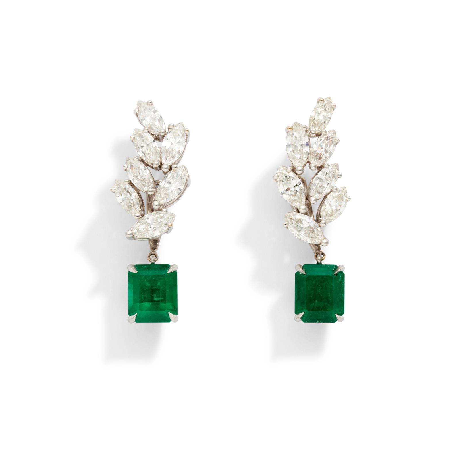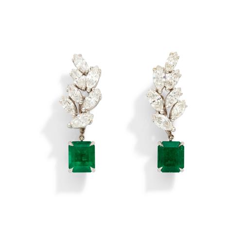 PAIR OF MAGNIFICENT EMERALD AND DIAMOND EAR PENDANTS