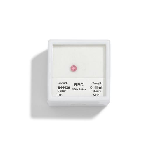 The Argyle natural fancy intense purplish-pink round brilliant-cut diamond weighing 0.19 carats, unmounted.