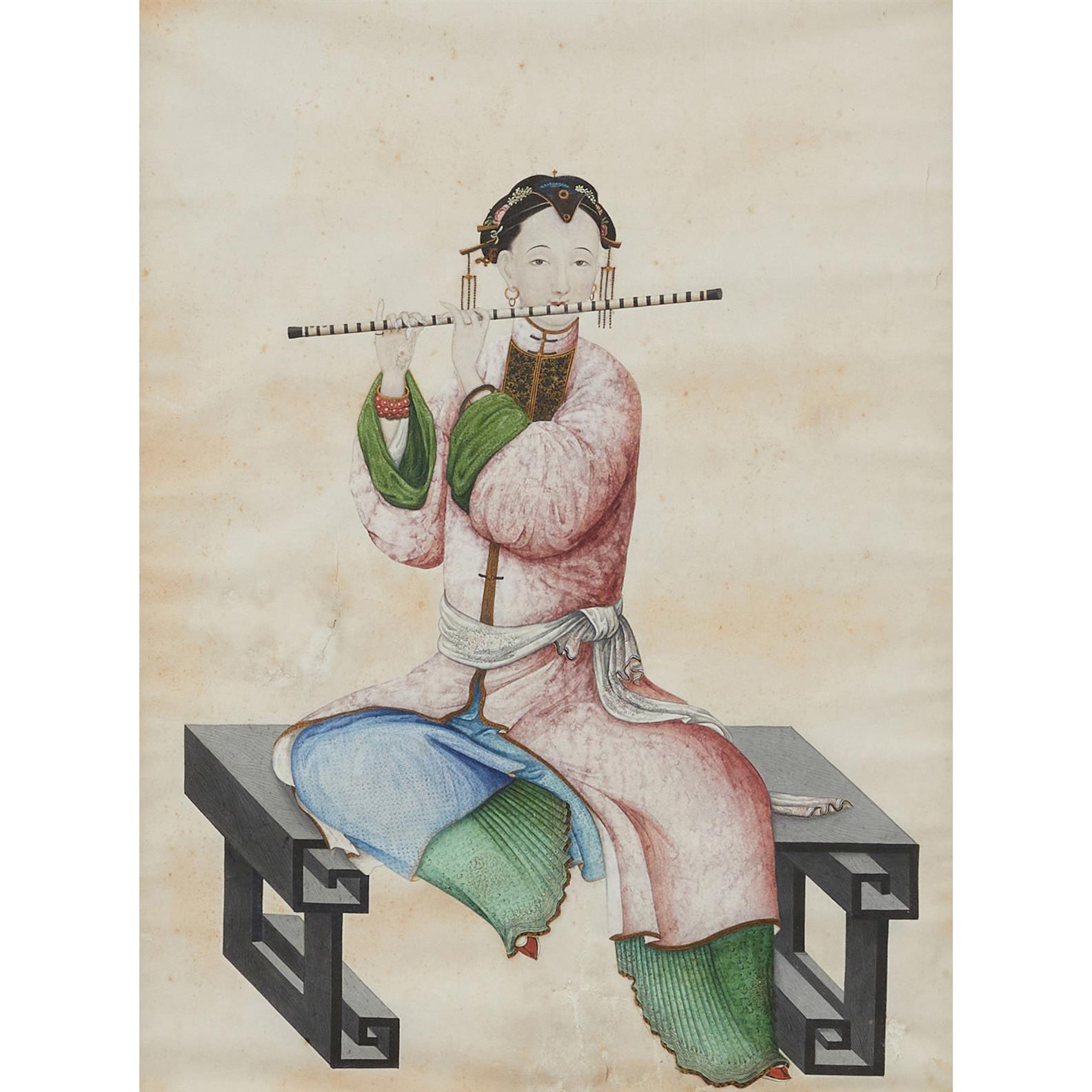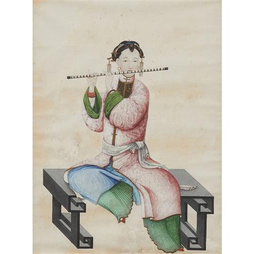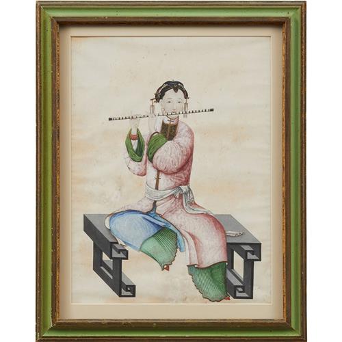 A CHINESE WATERCOLOUR OF A MUSICIAN PLAYING THE FLUTE