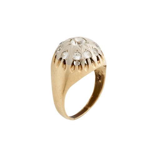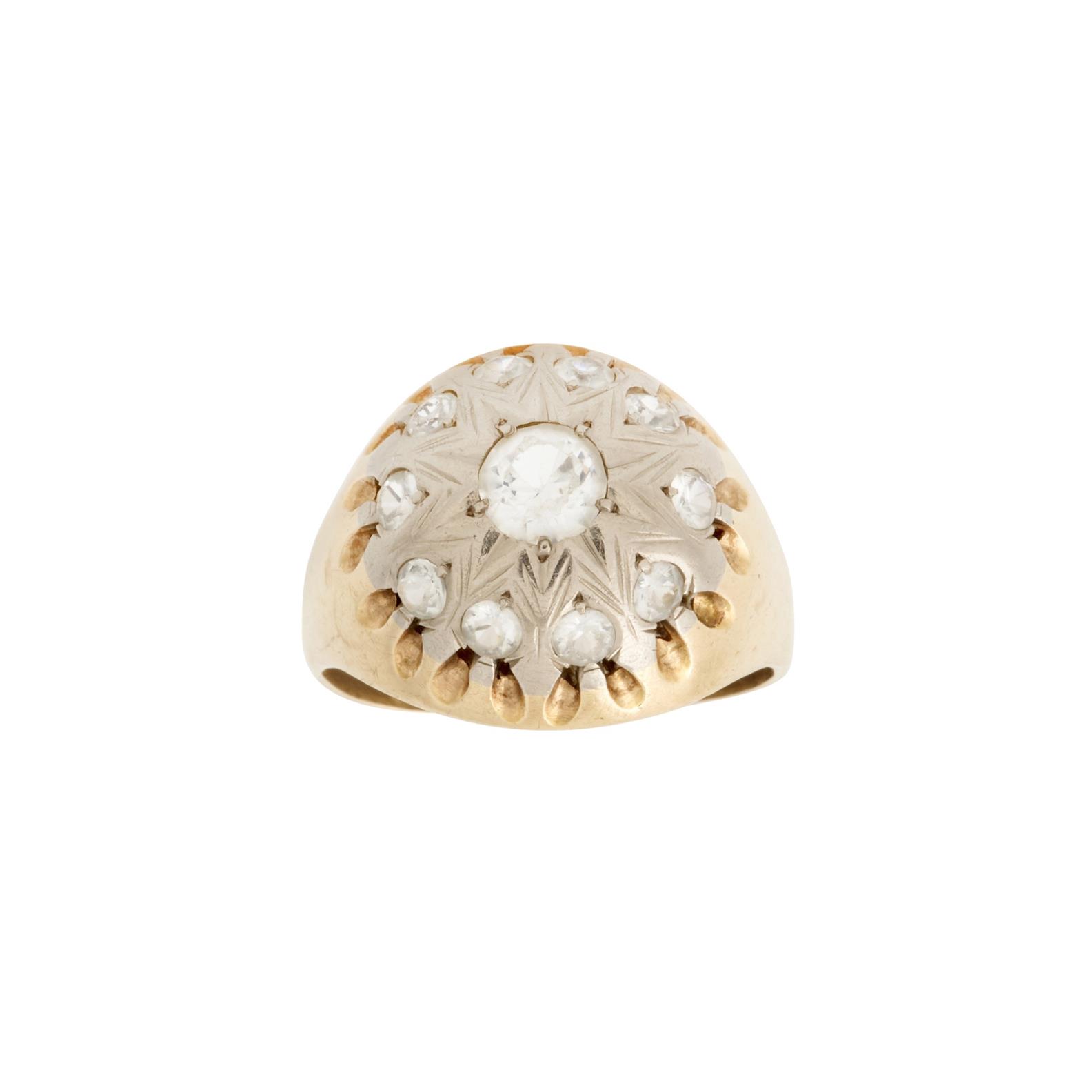 Of cluster design, set with circular-cut clear stones, mounted in 14ct gold, size R, gross weight approximately 10.1 grams.