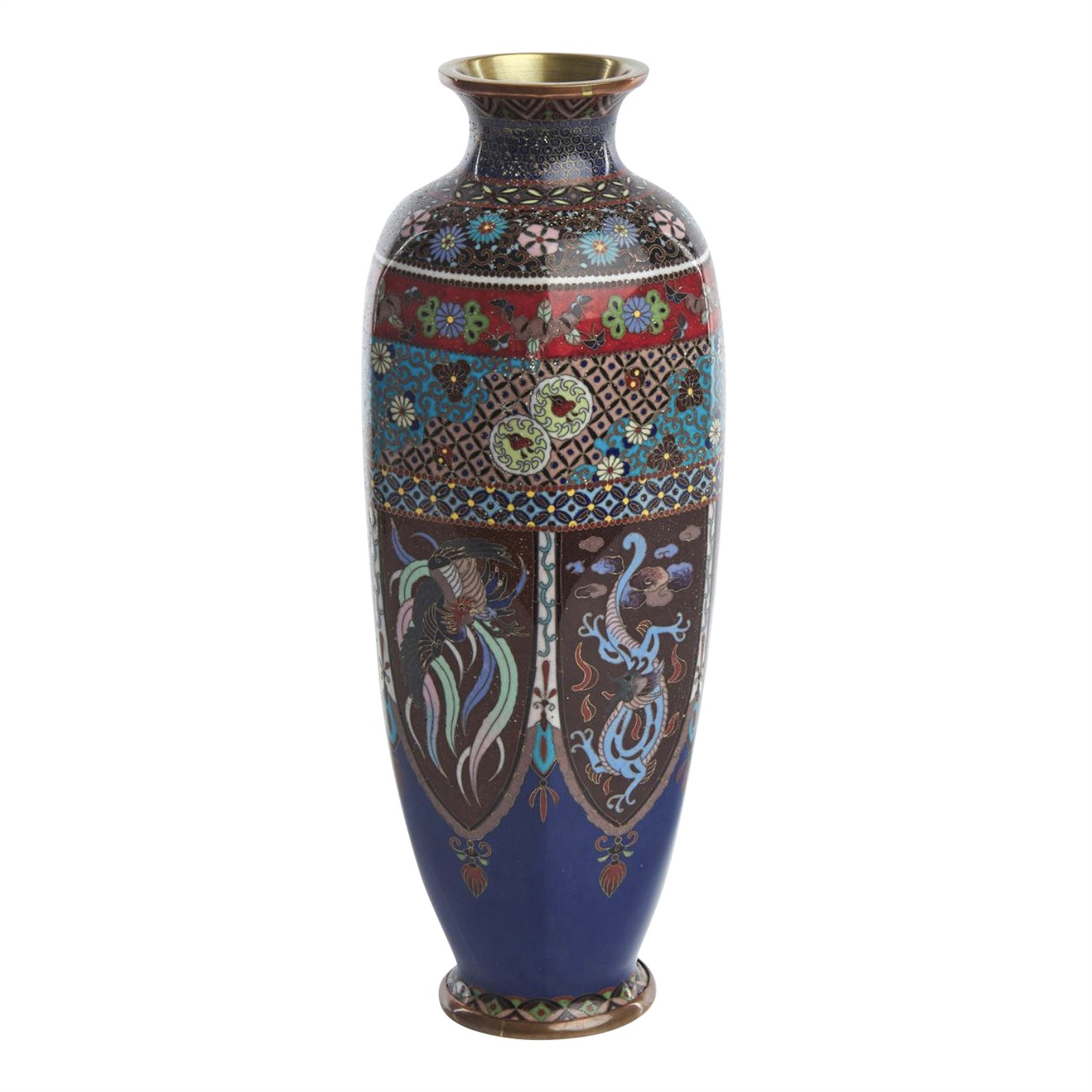 A LARGE JAPANESE HEXAGONAL FORM CLOISONNE VASE