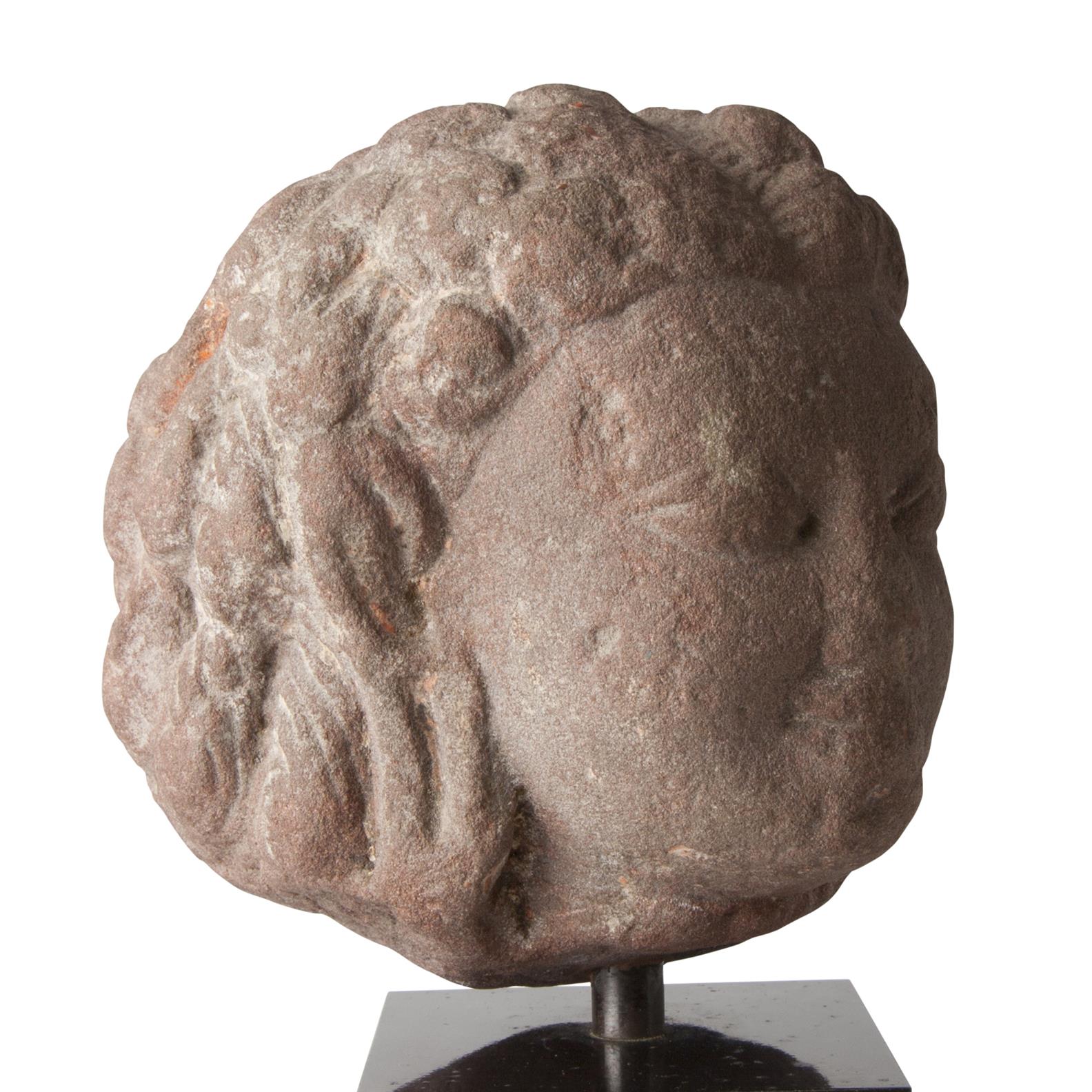 A GUPTA PERIOD NORTH INDIAN PINK STONE HEAD OF A WOMAN