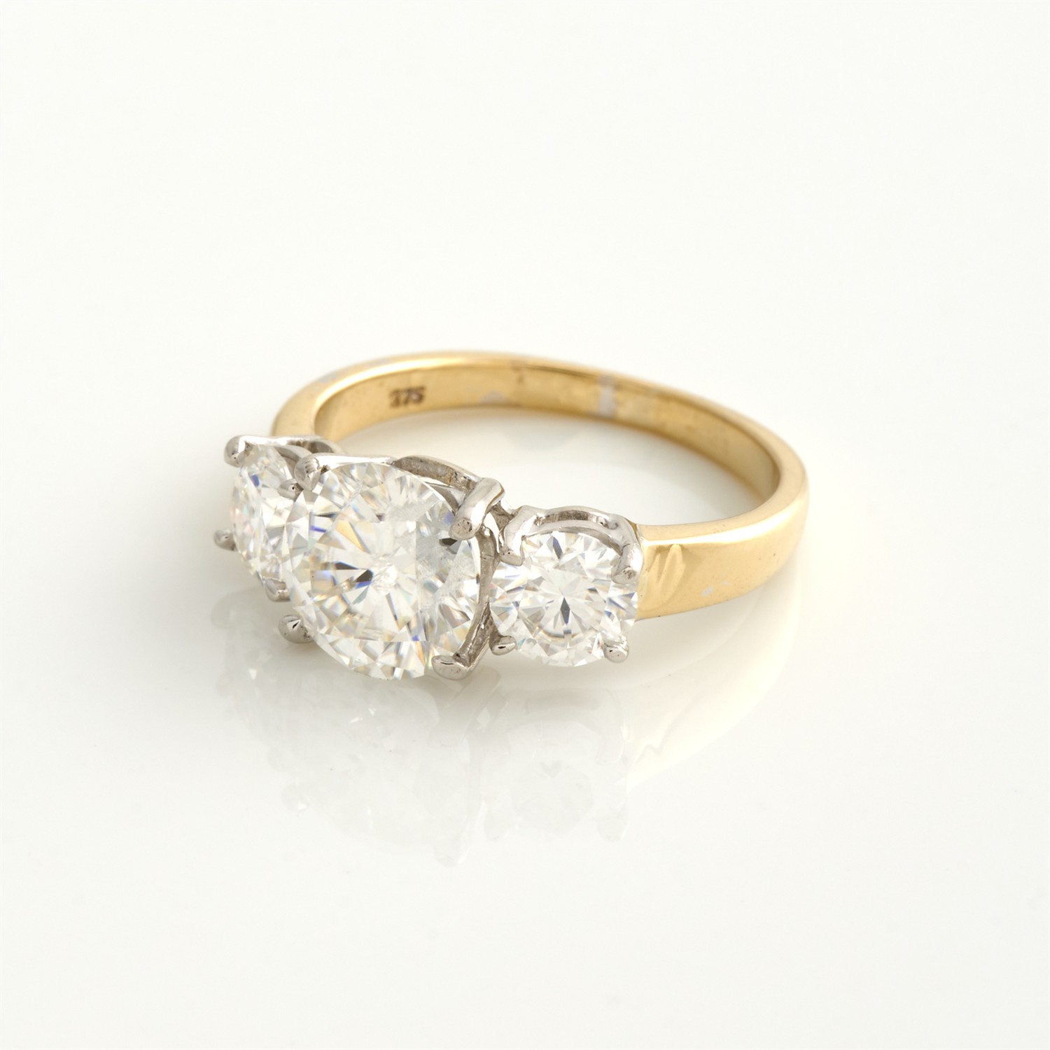A MOISSANITE RING IN 9CT TWO-TONE GOLD, SIZE J, 2.45GMS