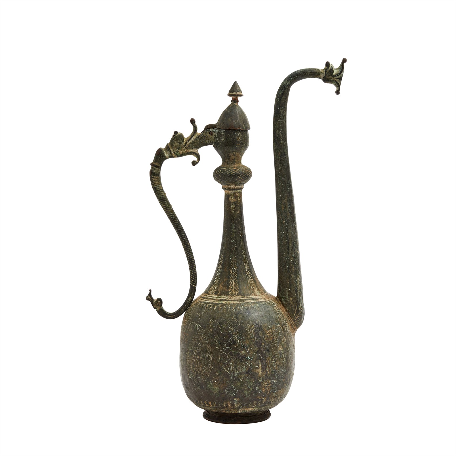 17th century, with a serpent-form handle and spot terminal, the whole with incised decoration and fine patina.
