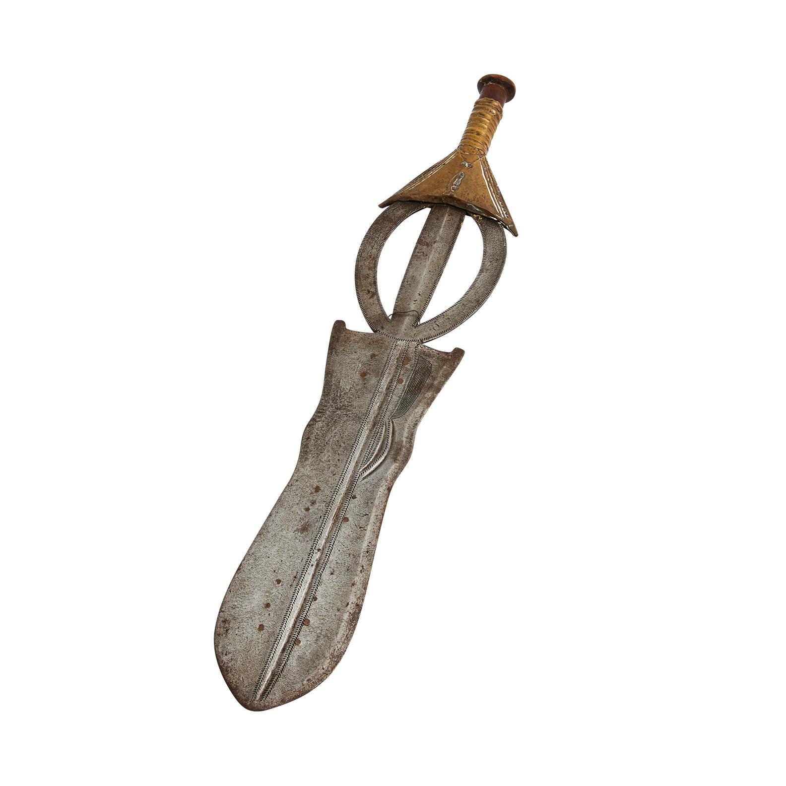 AN NGOMBE STEEL AND BRASS CEREMONIAL KNIFE