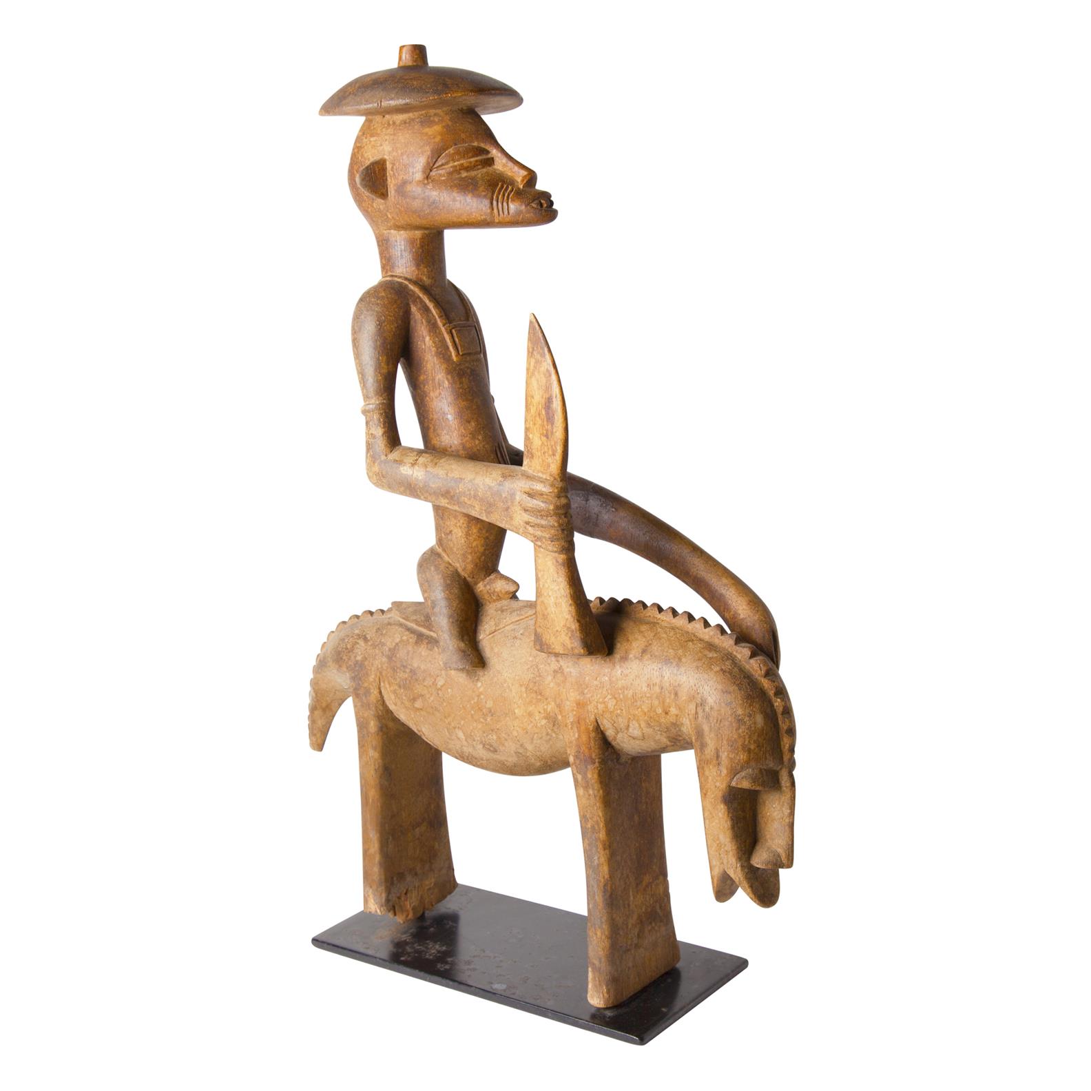 Ivory Coast, the horse and rider both stylized and with good patina consistent with age.