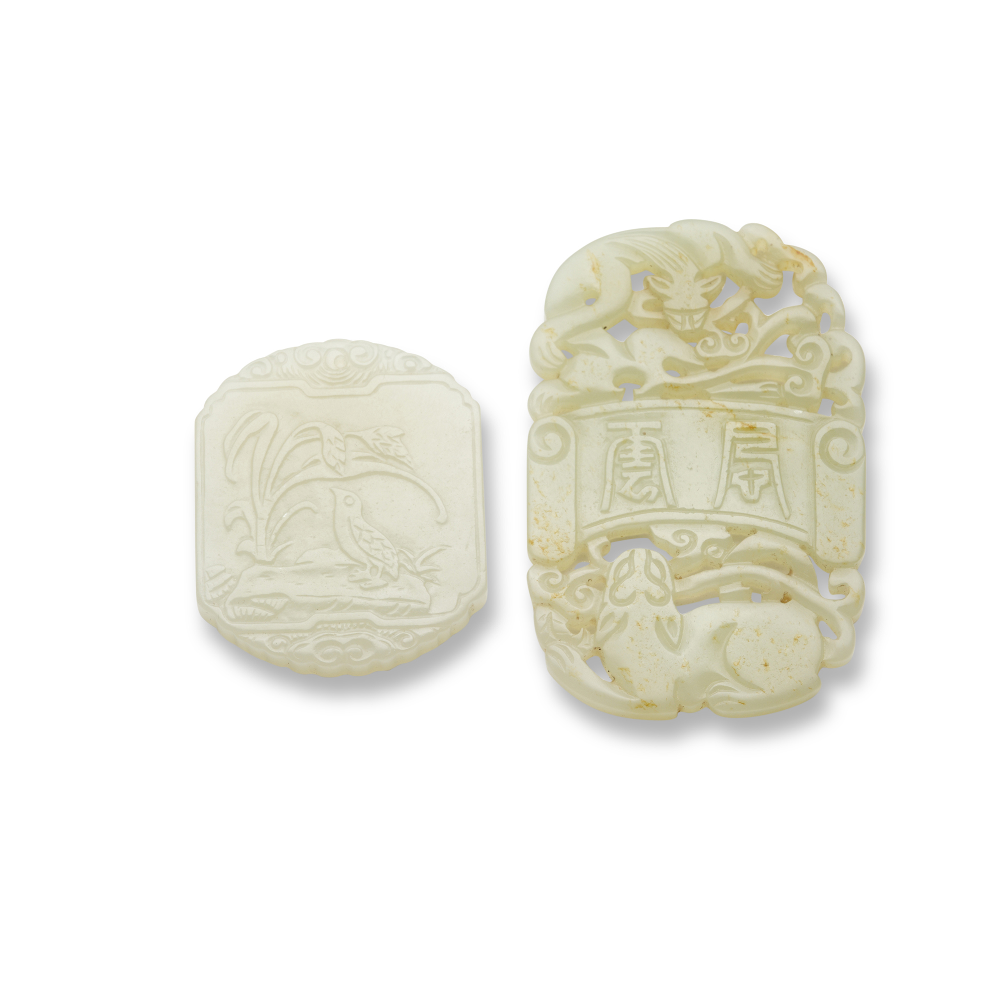 TWO WHITE JADE CARVED PLAQUES, QING DYNASTY (1644 - 1911)
