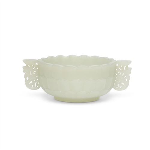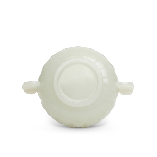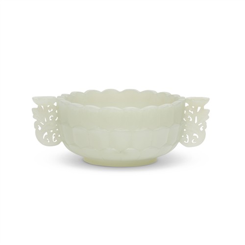 A CHINESE WHITE JADE CARVED LOTUS CUP, QING DYNASTY, 17TH CENTURY
