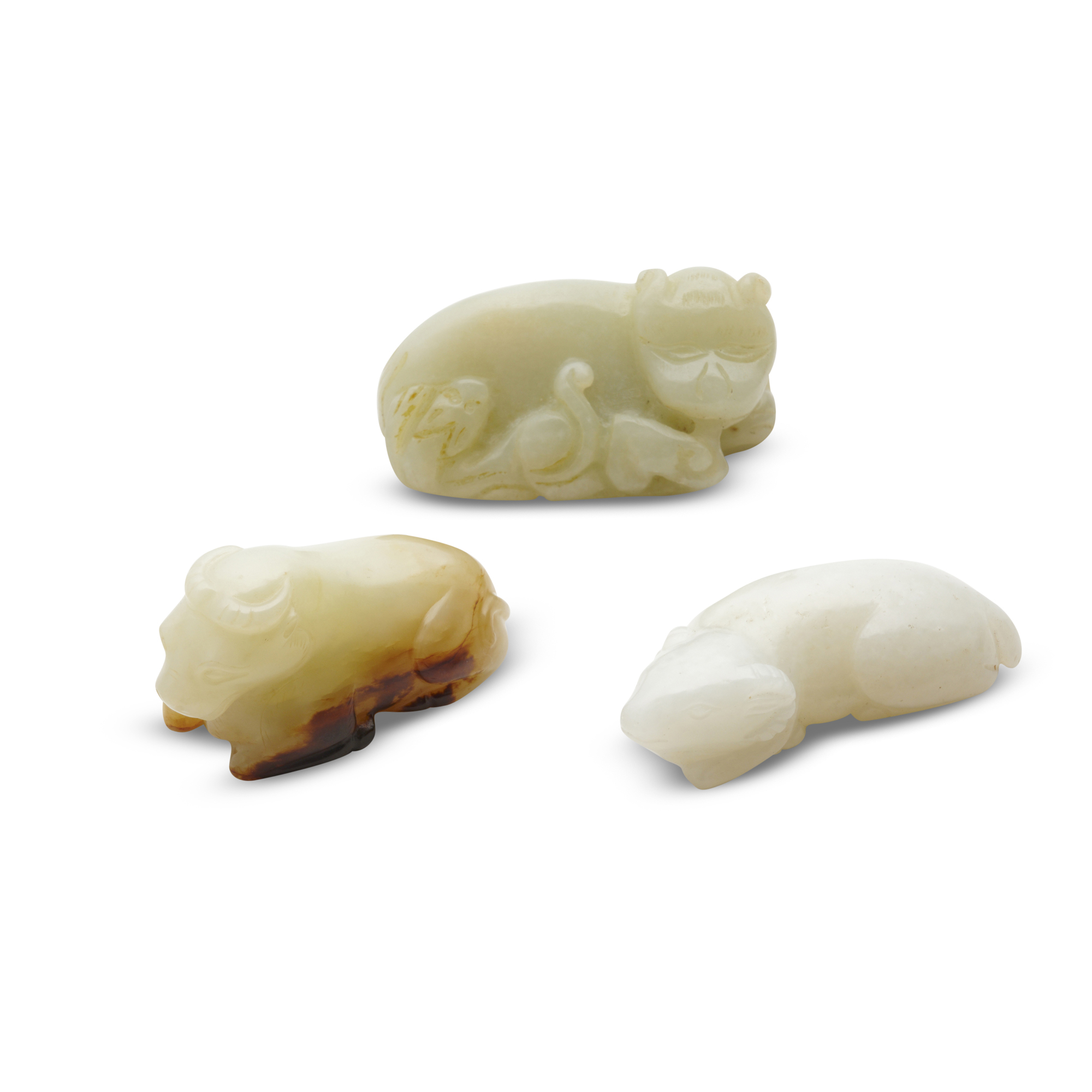 A GROUP OF THREE CHINESE JADE CARVINGS OF ANIMALS, QING DYNASTY (1644 - 1911)