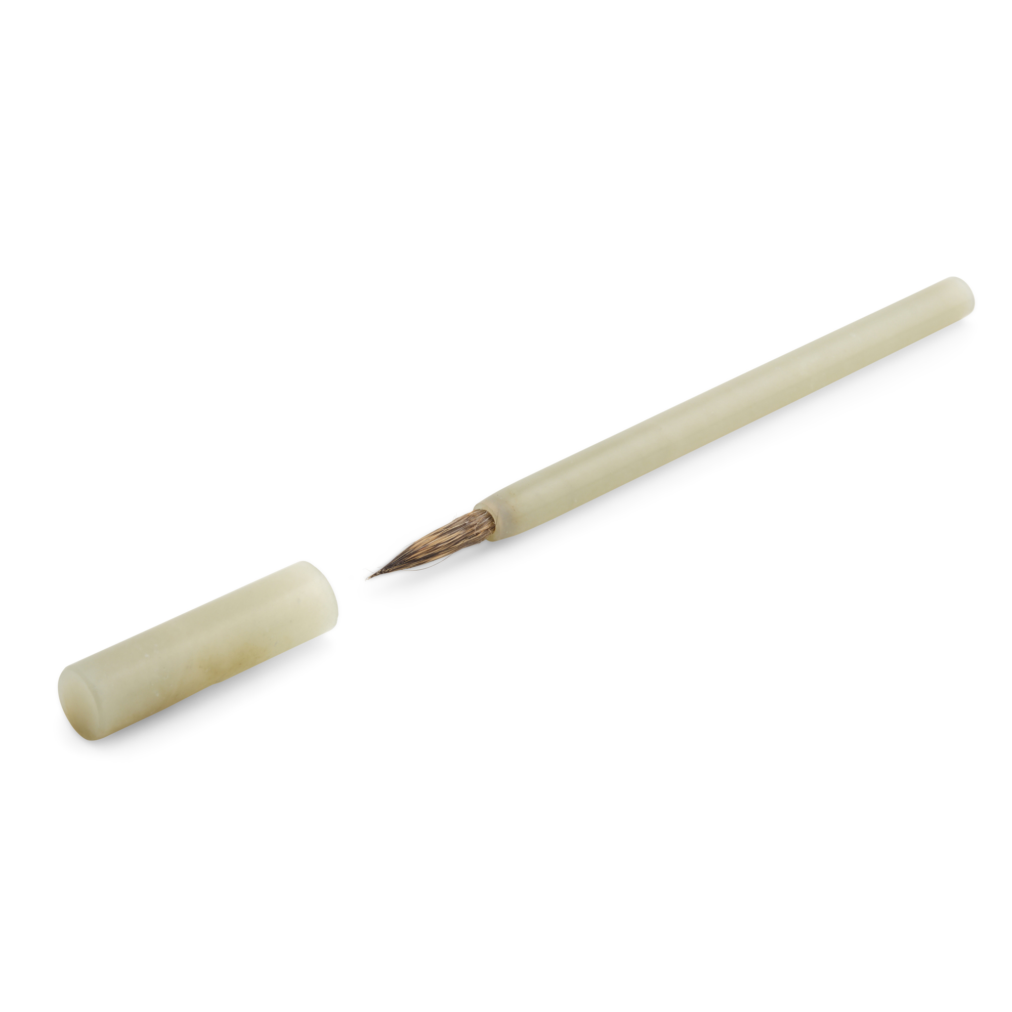 筆身以青白玉雕成,玉質溫潤,造型簡潔,為清代文房用具之雅器。