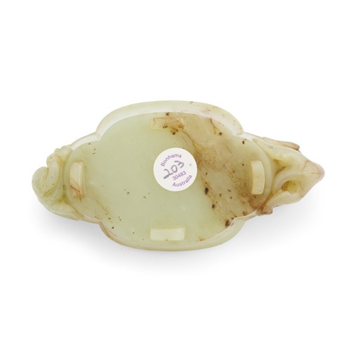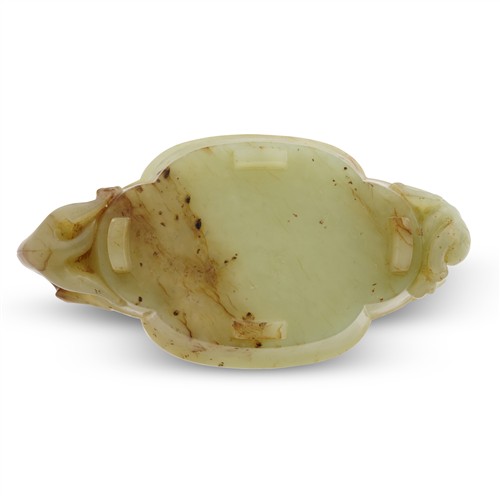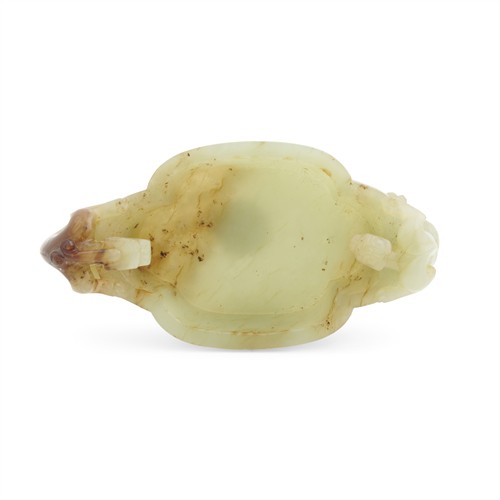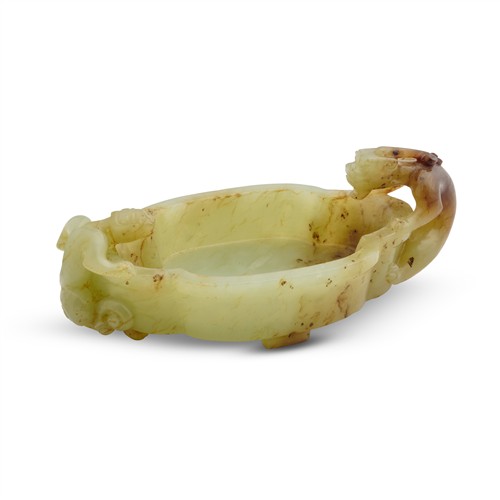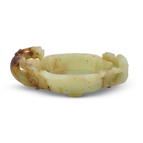 A CHINESE YELLOWISH CELADON JADE CARVED CHILONG WASHER, MING DYNASTY (1368 - 1644)
