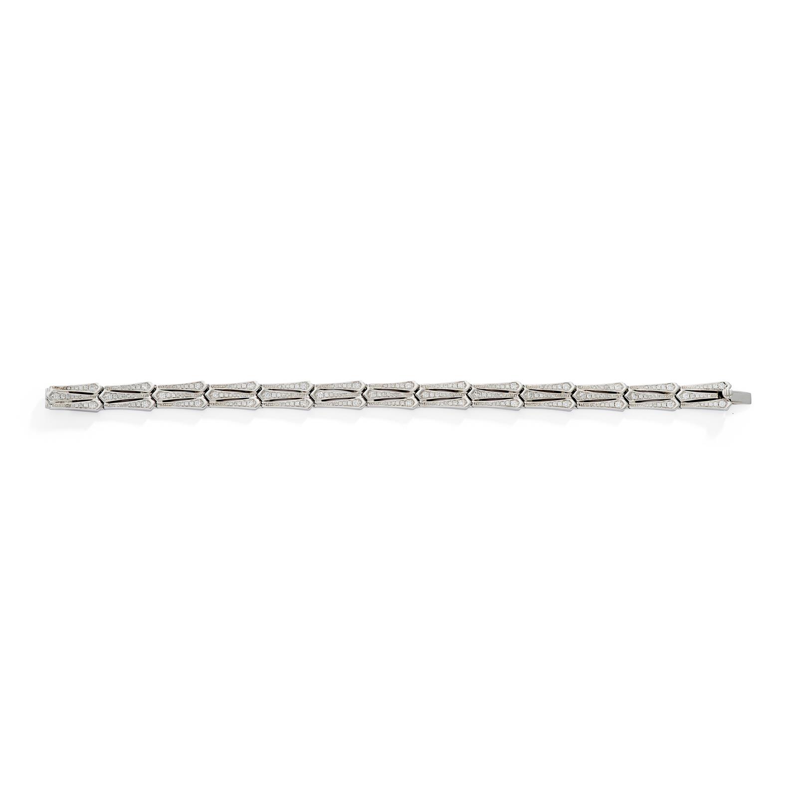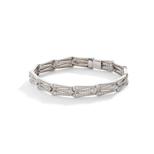 Composed of a line of geometric links pavé-set with circular-cut diamonds, the diamonds together weighing approximately 1.67 carats, mounted in platinum.