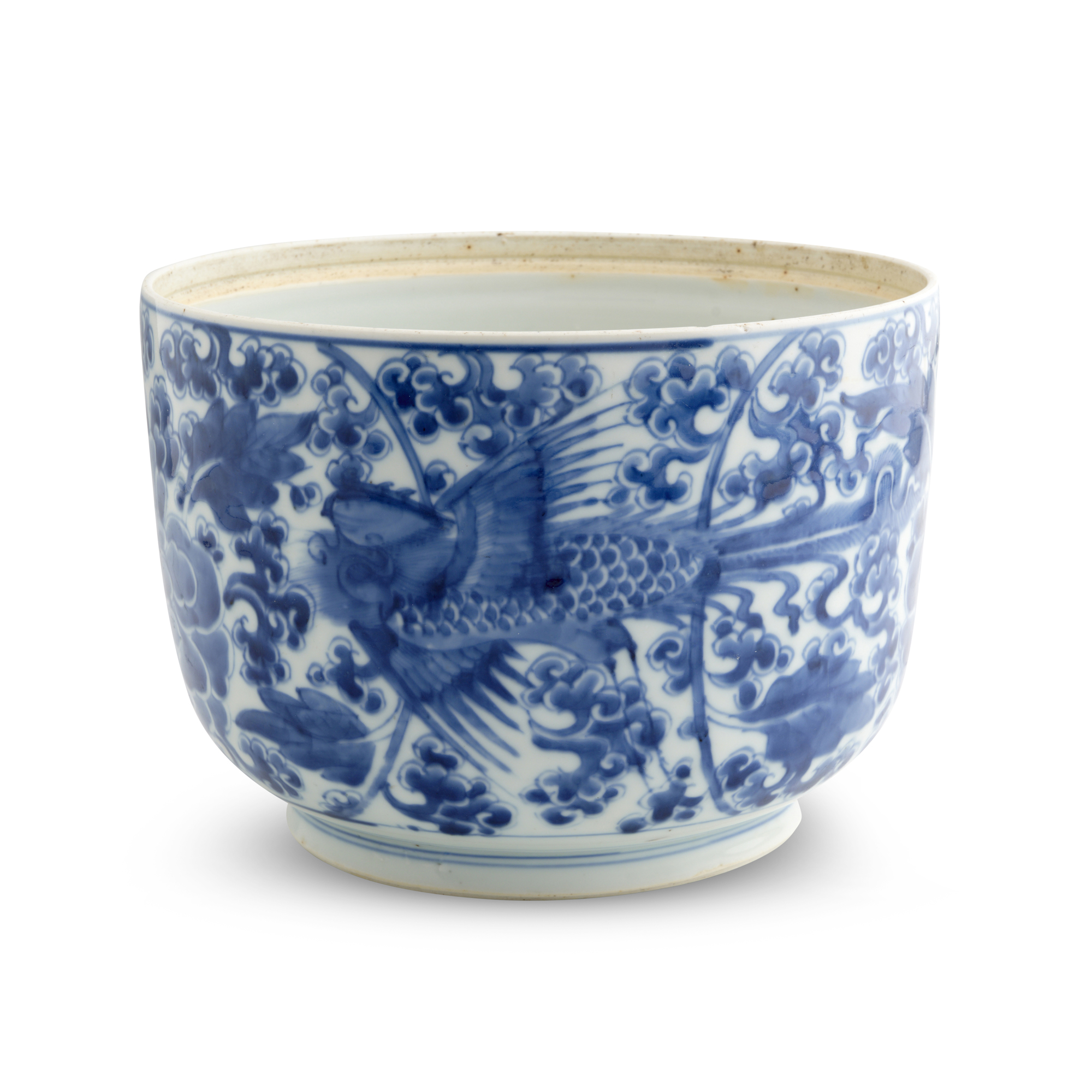 A CHINESE BLUE AND WHITE PHOENIX AND PEONY JAR, KANGXI PERIOD (1662 - 1722)