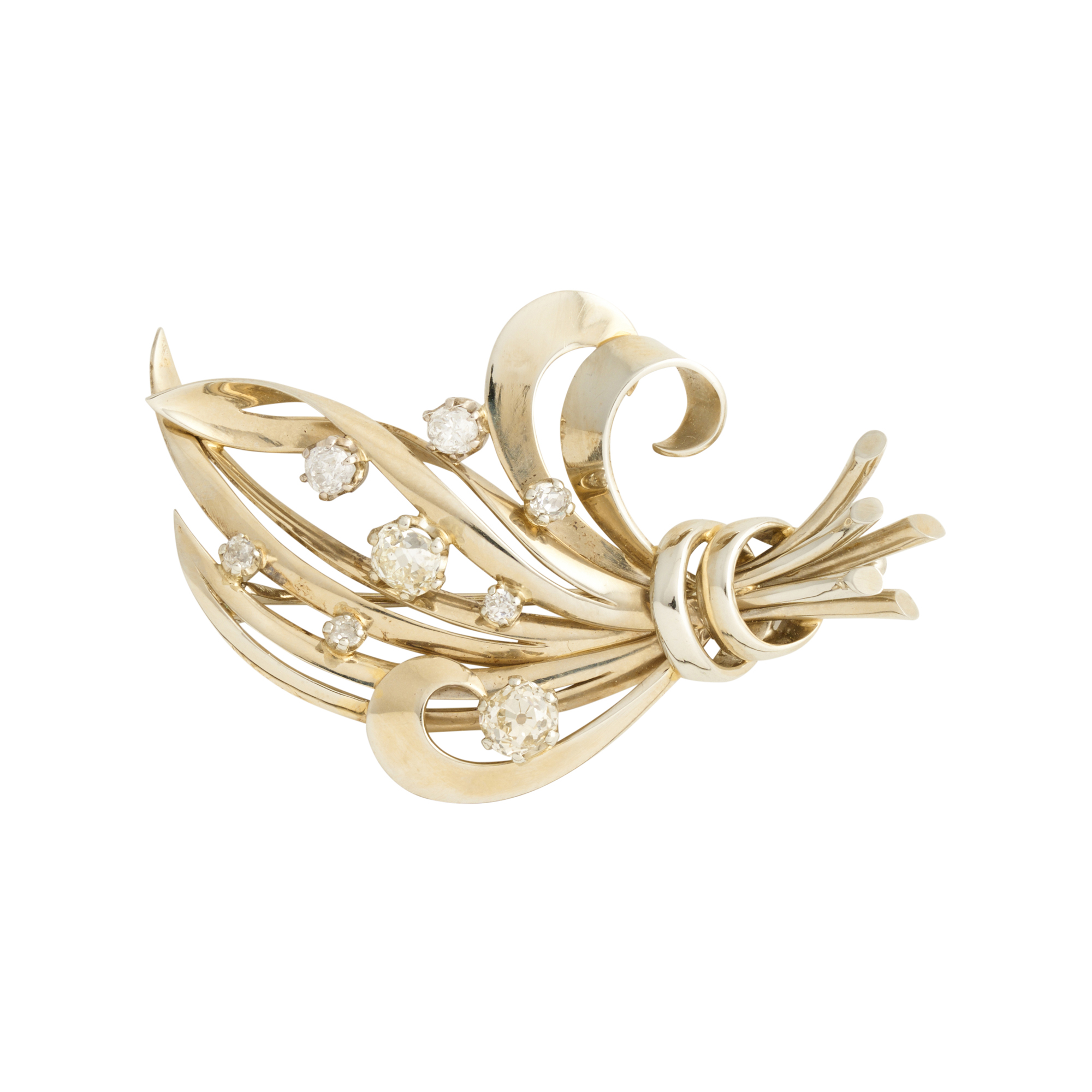 Modelled as a fleur-de-lis, set throughout with eight claw-set old European-cut diamonds together weighing approximately 1.50 carats, length 60mm, width 35mm, gross weight approximately 16.2 grams.