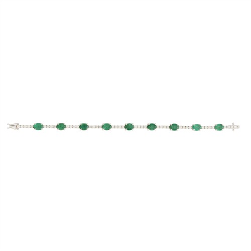 Modelled as a continuous line of claw-set round brilliant-cut diamonds spaced at intervals with claw-set oval-cut emeralds, the diamonds together weighing 2.55 carats, the emeralds together weighing 10.32 carats, completed by a tongue and groove clasp, length 190mm, gross weight approximately 12.6 grams.