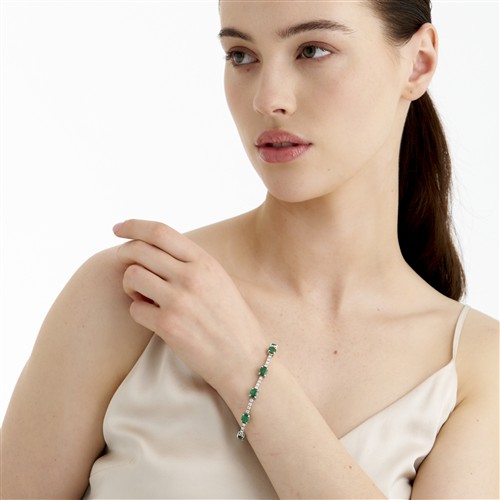 18CT WHITE GOLD, EMERALD AND DIAMOND BRACELET