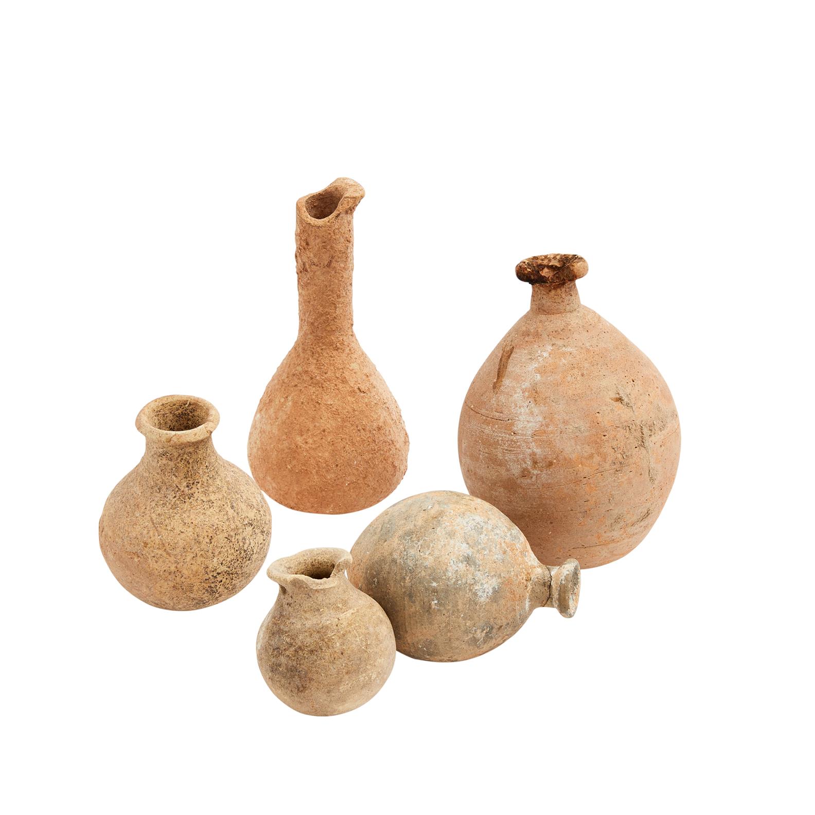A GROUP OF FIVE ANCIENT TERRACOTTA VESSELS