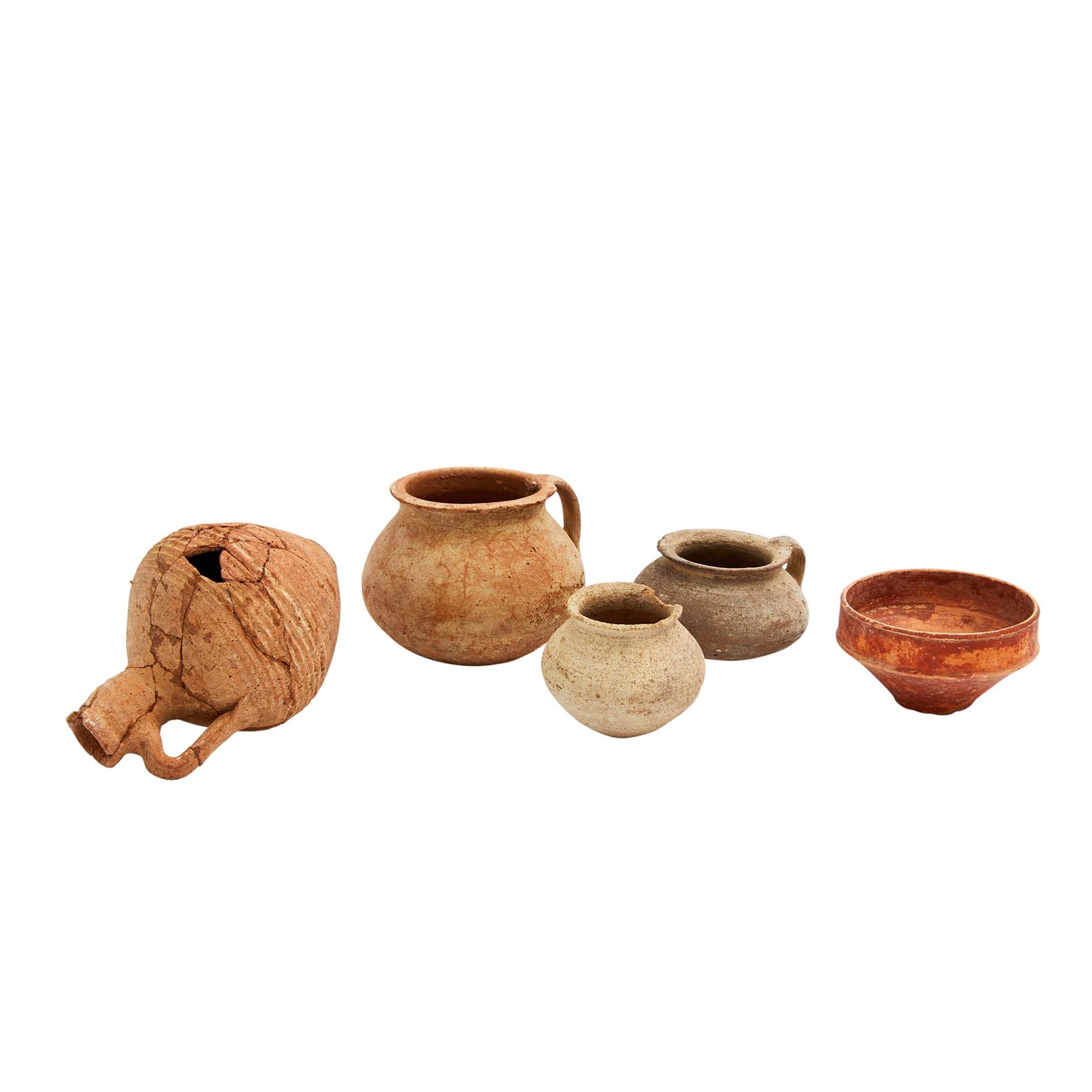 A GROUP OF FIVE ANCIENT TERRACOTTA VESSELS