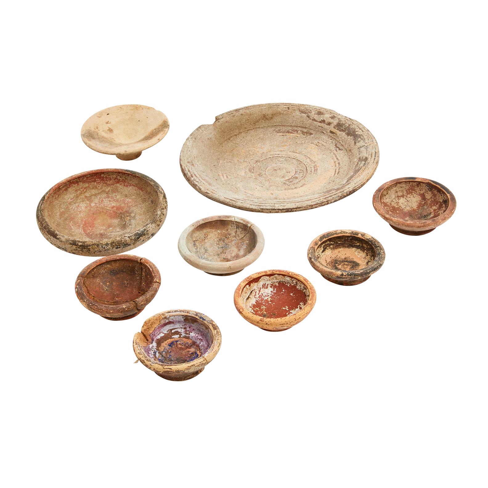 A COLLECTION OF NINE ANCIENT TERRACOTTA SHALLOW DISHES