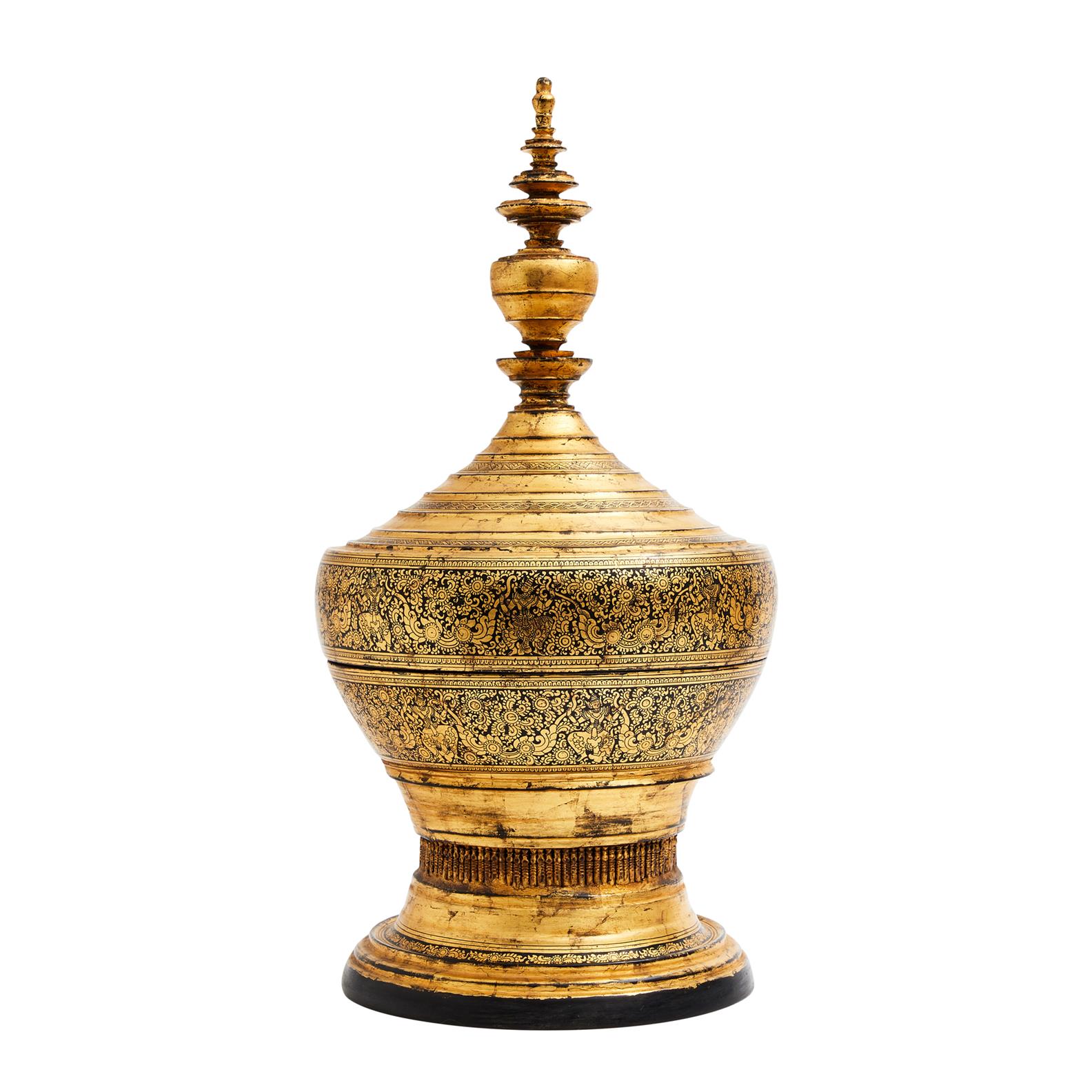 Overall in good condition with wear to the gilt lacquer on edge throughout; decoration possibly later or refreshed, interior shows wear and age.